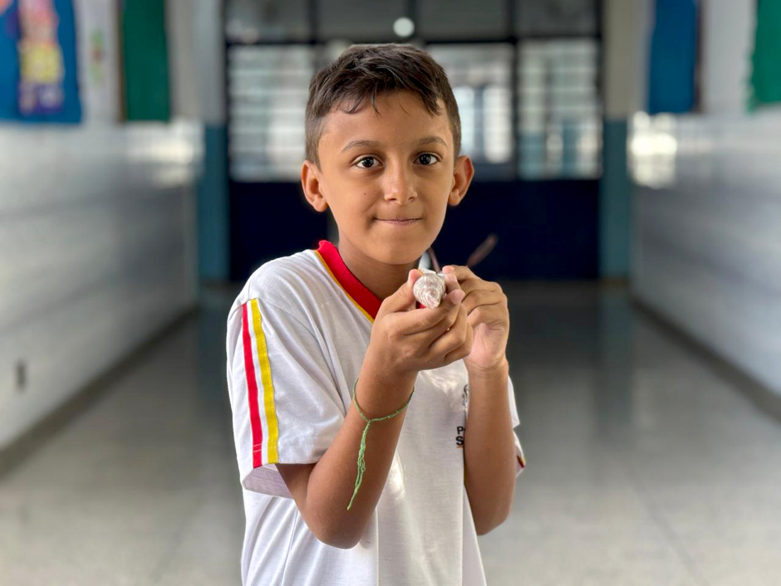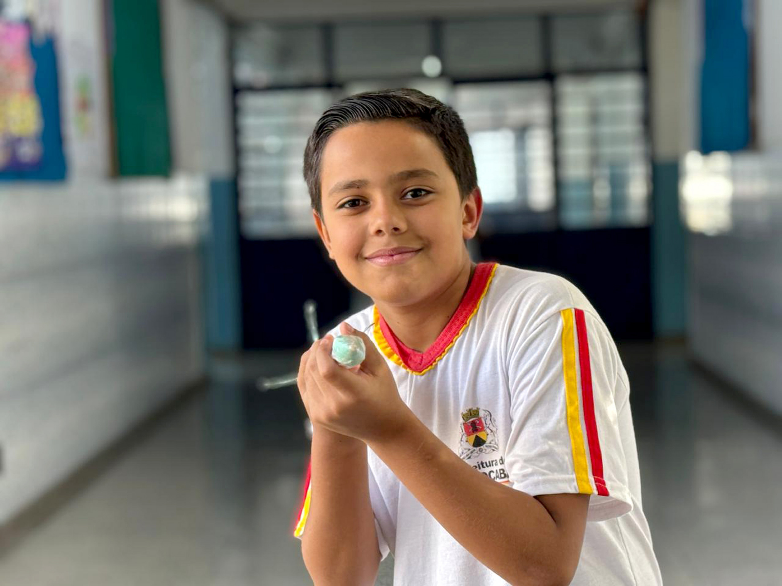 Nicolas Gabriel, de 10 anos, do 5ºB, viveu um momento de pura emoção quando soube que seu foguete alcançou dez metros de distância. “Eu estava calmo, foquei, orei a Deus e deu certo! Pulei de alegria! Mas fiquei muito nervoso esperando saber a marca. Eu escondi o foguete em casa porque achei que ia ter competição!”, contou, sorrindo.