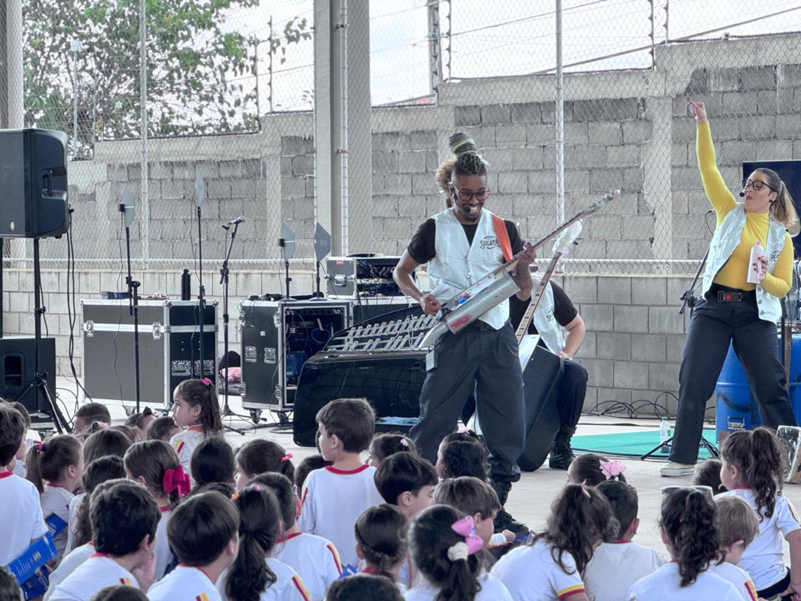 A mágica aconteceu com a chegada da Orquestra de Sucata, no dia 27 de maio, na Escola Municipal Professor Milton Santos, um projeto cultural que mistura arte, educação e sustentabilidade. E não é só um show de música: é também um convite para que os pequenos pensem sobre o planeta, o lixo e o que a gente pode fazer com aquilo que, muitas vezes, iria parar no descarte.