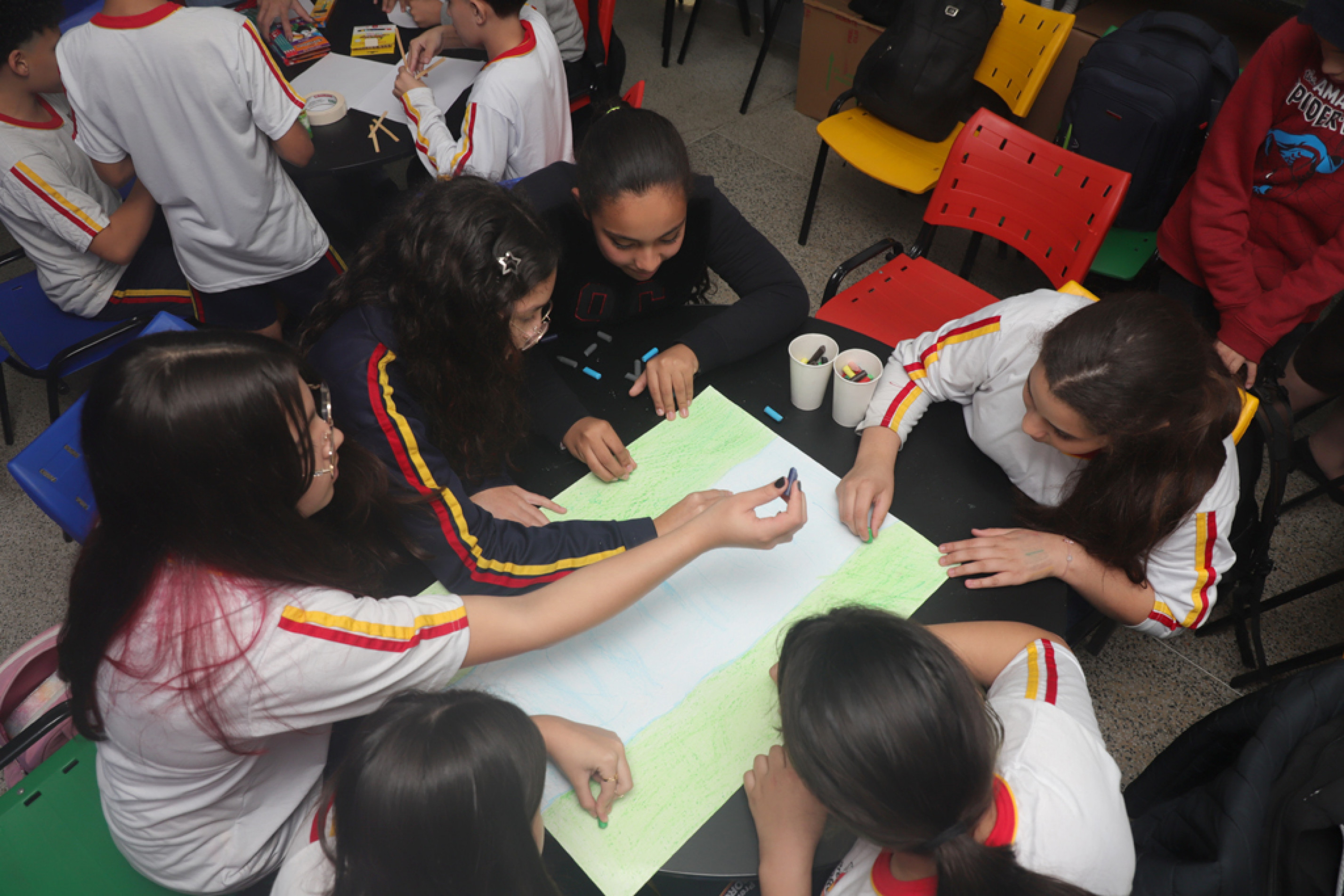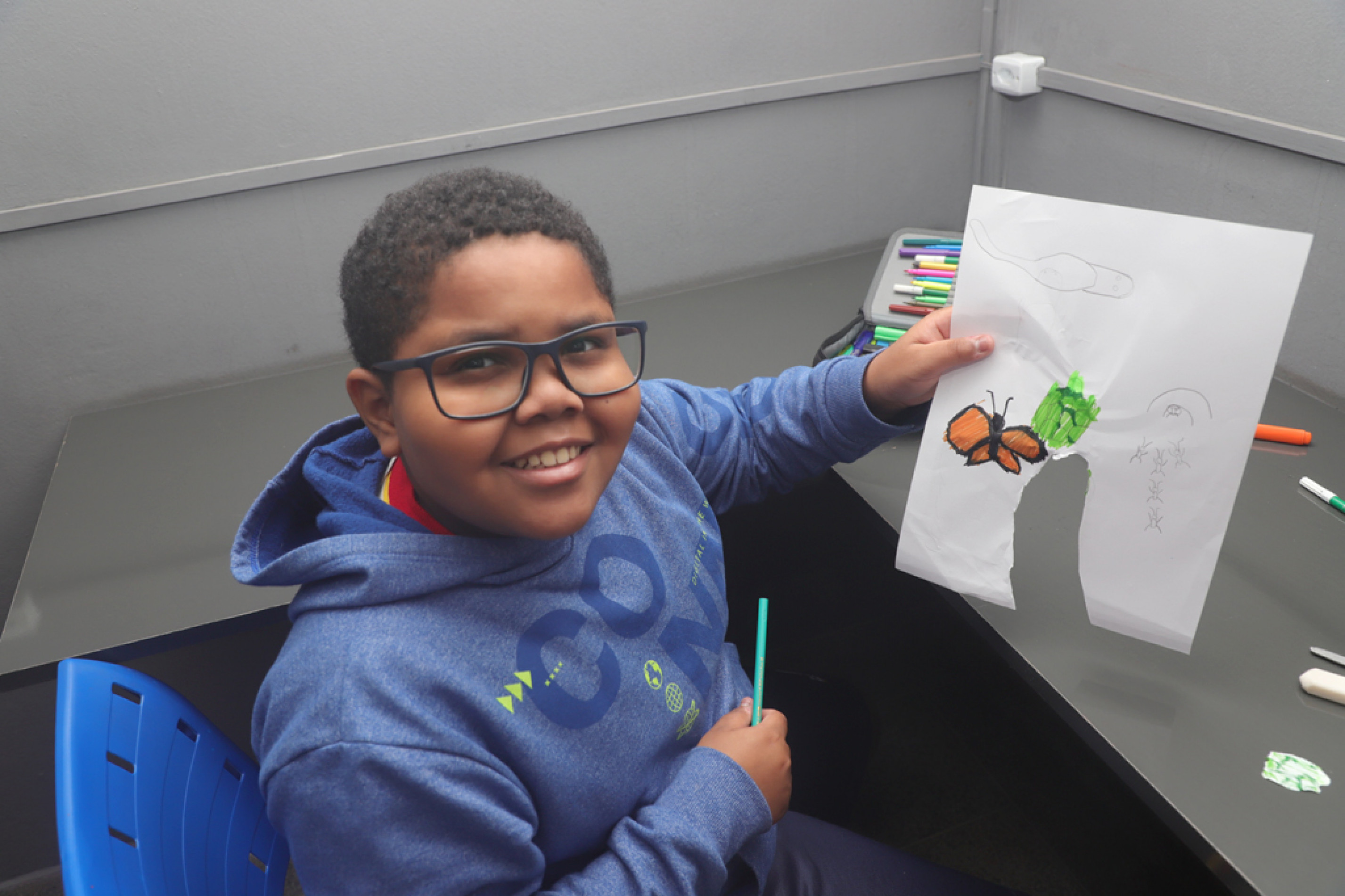Para Luiz Miguel Maurício de Oliveira, de 11 anos, tudo era novidade. “É a primeira vez que vejo isso. Achei bem legal!”, contou ele, enquanto desenhava um jacaré para o cenário, um dos personagens principais da história, junto com o barquinho.