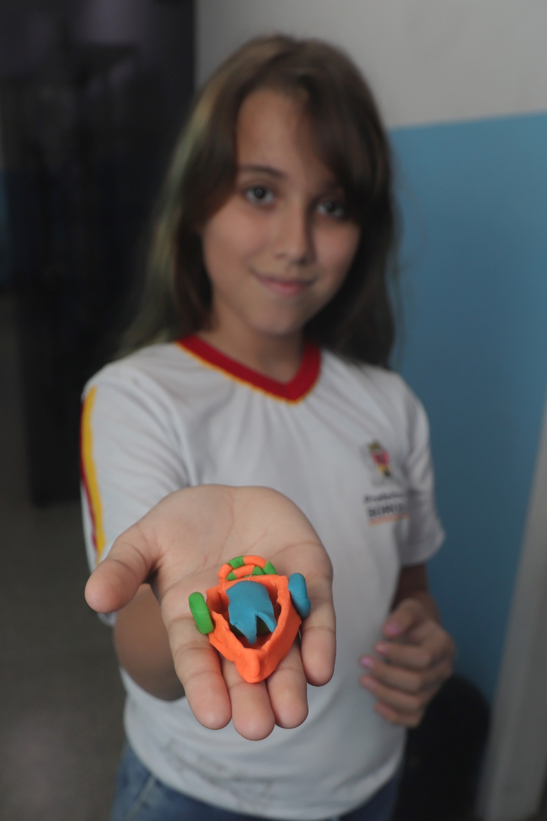 Já Alice Rodrigues Edvirges, de 11 anos, ouviu falar do Stop Motion no programa Conecta, no Sabe Tudo. “Aprendi sobre isso no ano passado. Acho uma arte muito boa, é legal e divertido. Eu fiz um barco de massinha e precisei usar bastante coordenação motora, porque tem que ter muito cuidado para ele não desmanchar.”