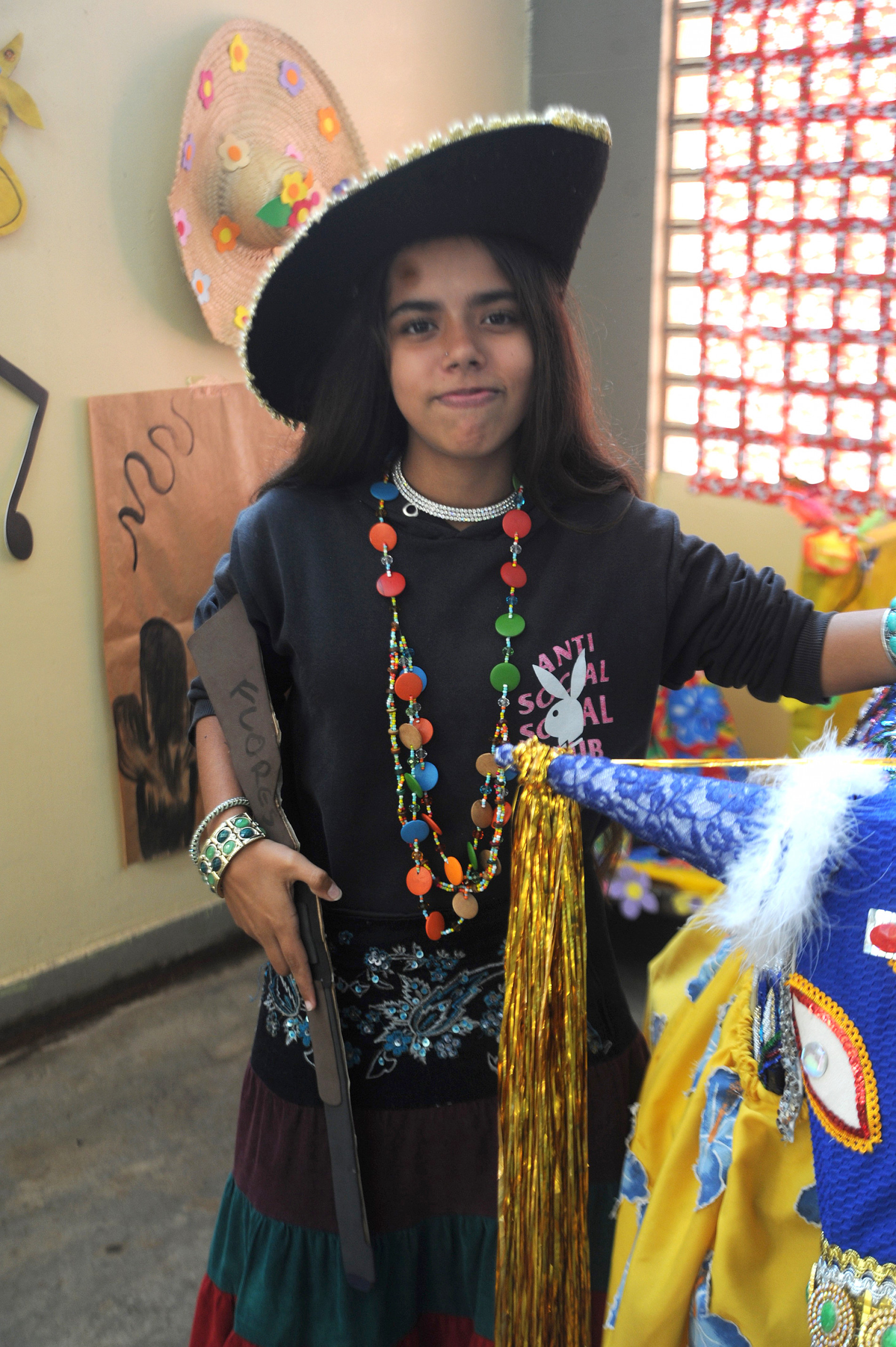 A aluna Maria Luiza, de 12 anos, participou da apresentação sobre Lampião e Maria Bonita, figuras lendárias do cangaço nordestino. “Dois personagens famosos e corajosos. Contamos a história deles, o casamento, em um espetáculo”, explicou.