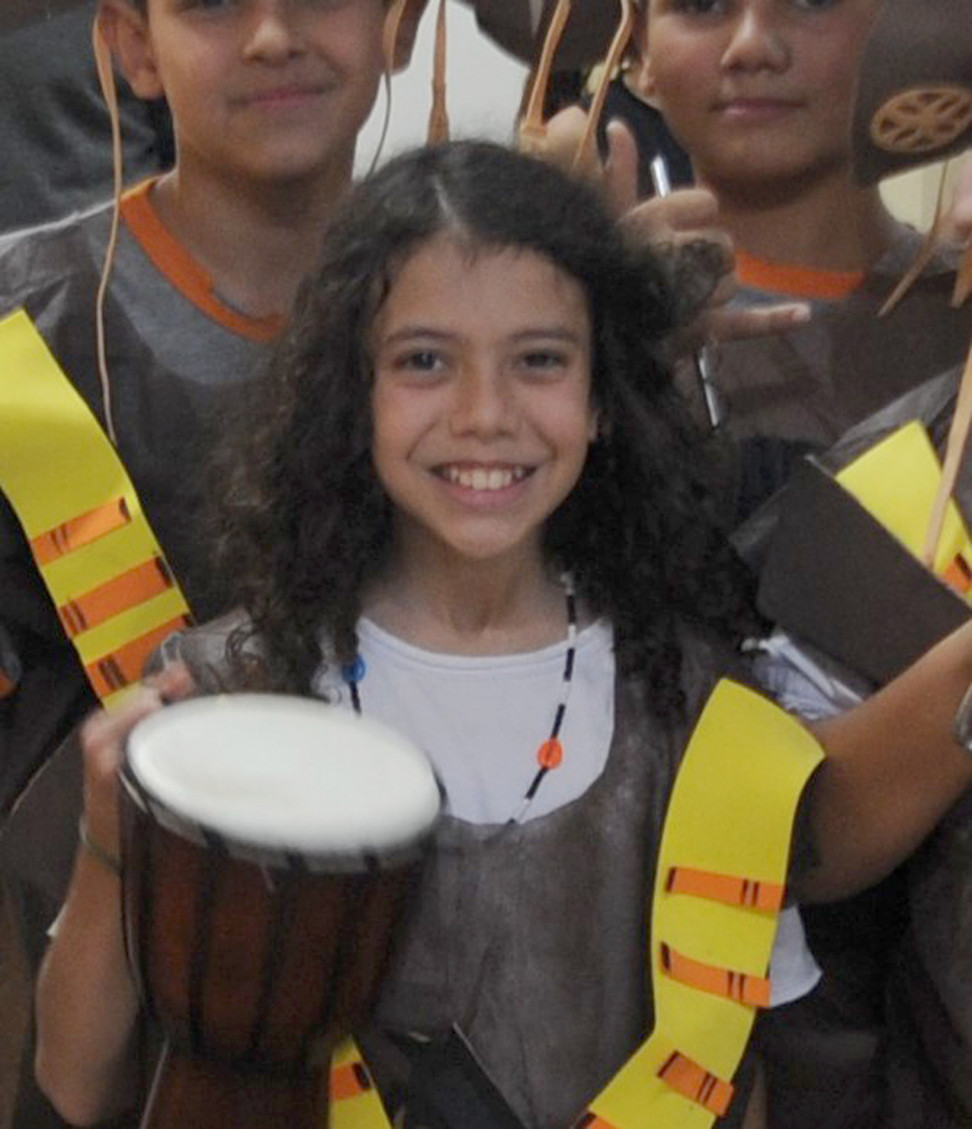 Lucas Henrique da Silva Gacemiro, de 12 anos, se encantou com a atividade proposta pelos professores e aprendeu a tocar instrumentos para a apresentação.