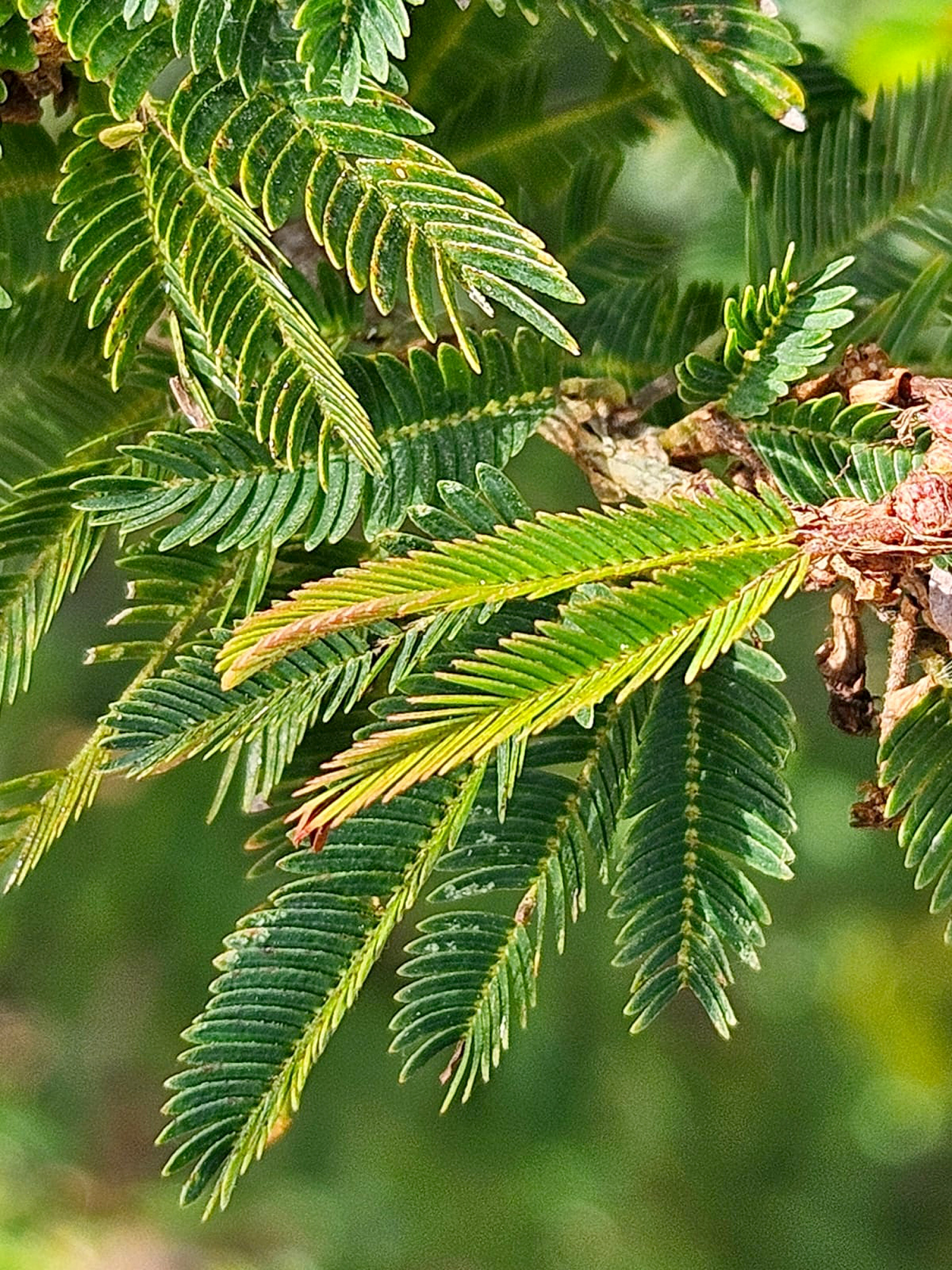 Uma curiosidade interessante: você sabia que a Caliandra pertence à mesma família do feijão? Isso mesmo, ela faz parte da família Fabaceae. No entanto, diferentemente do feijão, as sementes da Caliandra não são comestíveis! Observe na imagem o fruto em forma de vagem, muito parecido com o do feijão. É dentro dessa vagem que ficam as sementes da planta.