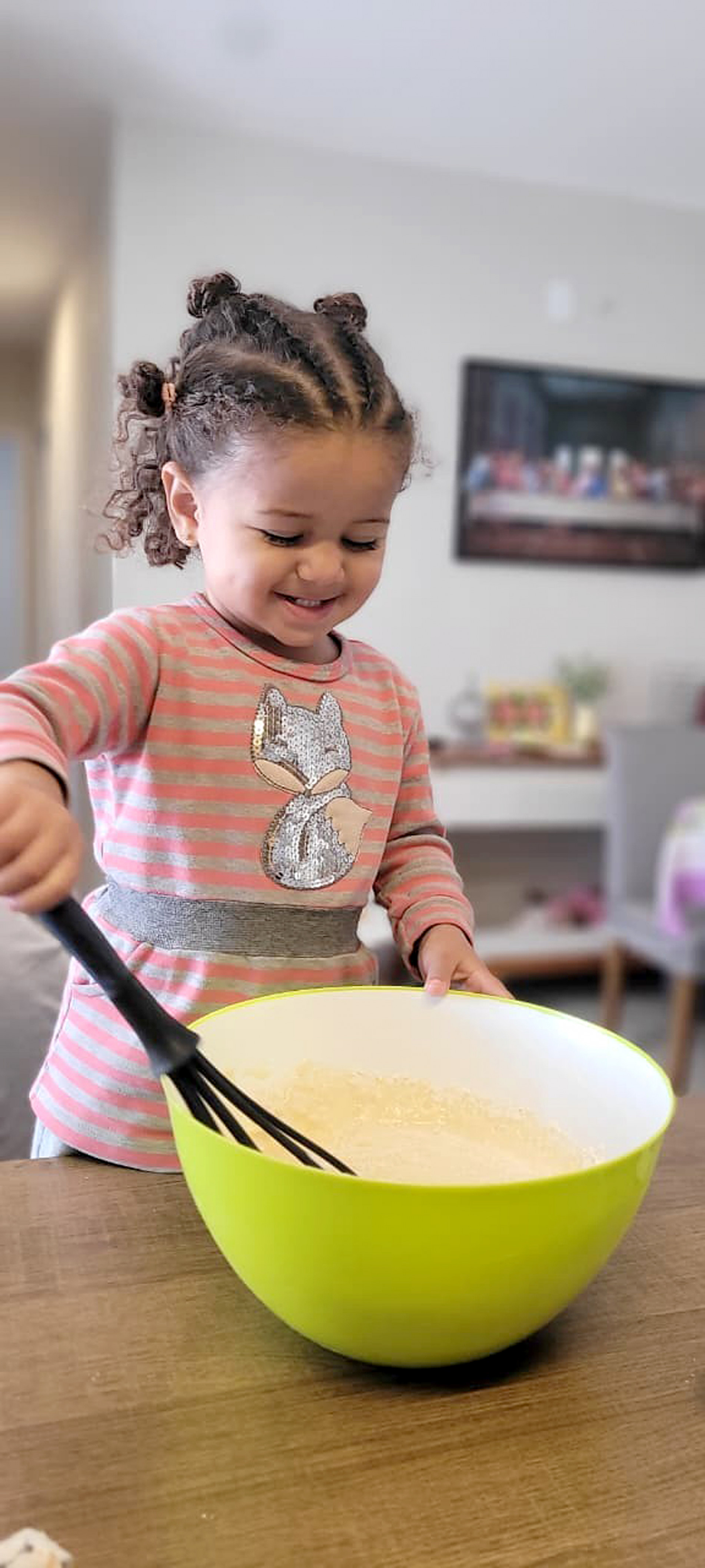 Para Fernanda Pereira da Silva do Valle, 36 anos, cozinhar com os filhos virou uma tradição cheia de carinho, e uma forma especial de se conectar. “Aqui em casa, preparar receitas em família começou na pandemia. Eu e meu marido fazíamos bolos e outras delícias quase toda semana, talvez como algo terapêutico. Com a chegada das crianças, esse hábito continuou. Cozinhar juntos nos proporciona momentos de conexão e afeto, além de fortalecer a autonomia e a confiança delas. Quando pego a forma de bolo e começo a separar os ingredientes, alguém já pergunta se vai ter bolo”, conta Fernanda.