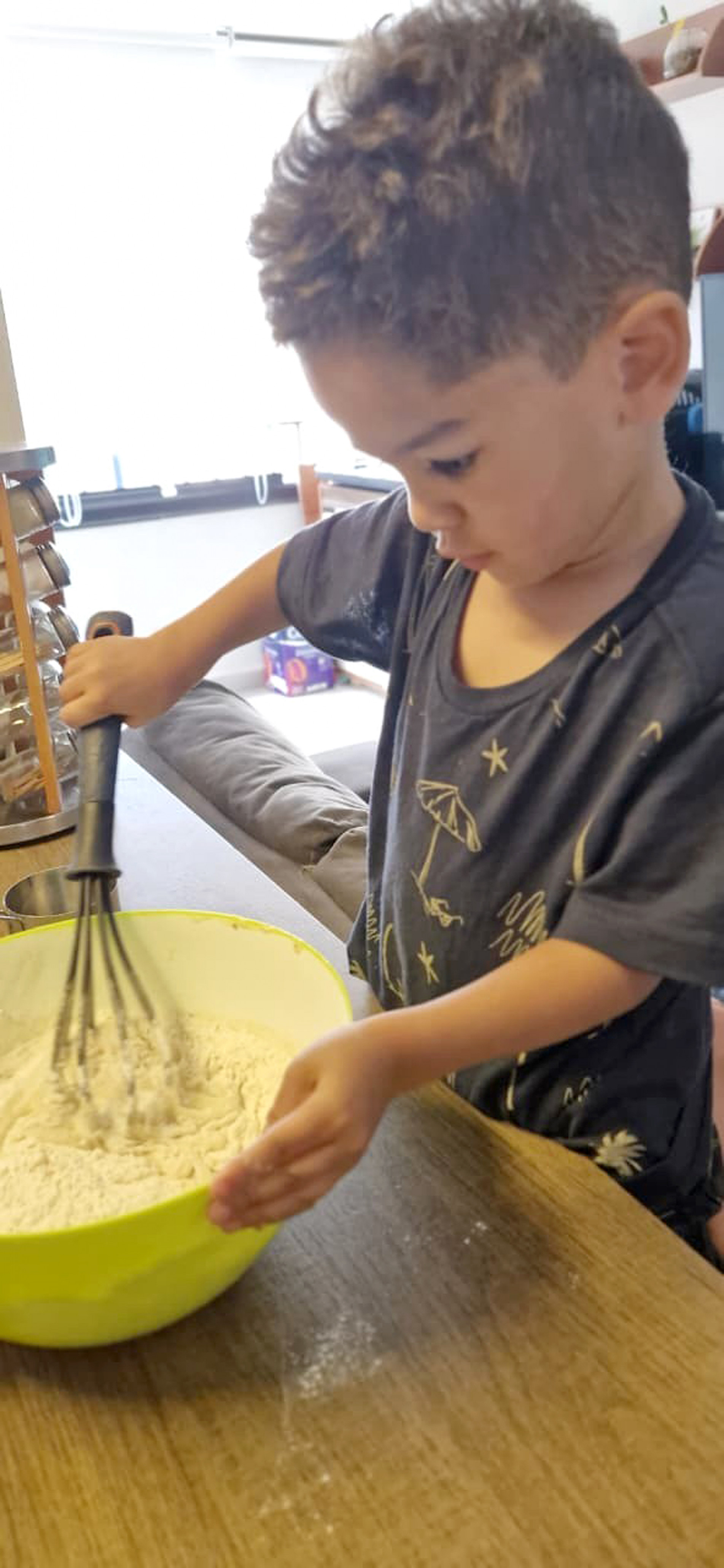 “Eles adoram fazer esses biscoitos porque ficam com formatos de bichos, carros e são uma delícia! Eles entendem que, antes de comer, tem o preparo, a espera do forno, e tudo isso ajuda a criar memórias. Aqui em casa fazemos de tudo, são muitas receitas, e nas férias uma das escolhidas foi a de biscoitos amanteigados em vários formatos”, completa.