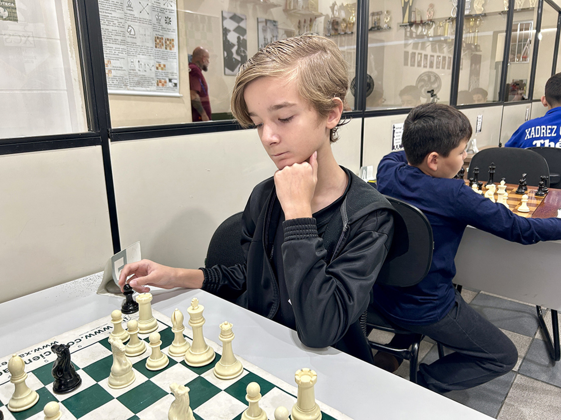 Até dá para jogar xadrez no computador ou pelo celular, e Cauã Eduardo de Sá, de 11 anos, começou assim. Mas, como é um jogo tão legal, ele acabou pedindo para que o irmão mais velho mostrasse como é o tabuleiro de verdade.