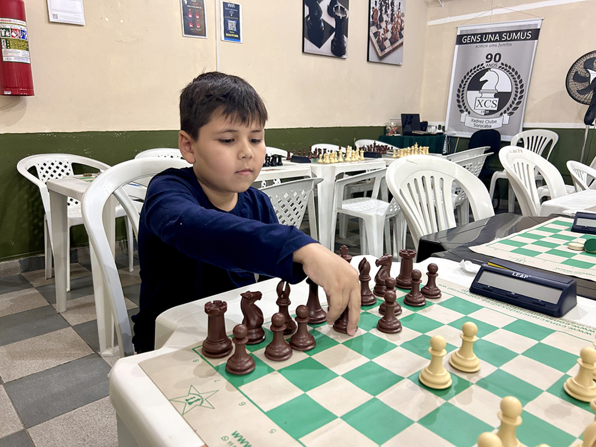 Pedro Francisco Rodrigues de Almeida tem 8 anos e joga xadrez desde os 3 anos de idade. “Eu ganho, eu perco, eu empato. O legal é jogar.”