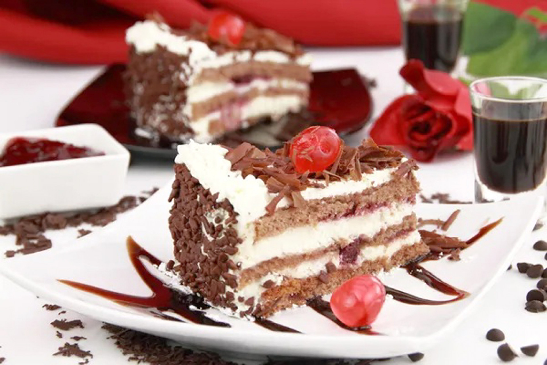 E que tal encerrar a viagem com um doce delicioso? Prove o bolo Floresta Negra, feito com chocolate, cerejas e chantilly. Cada fatia é uma verdadeira festa de sabores!