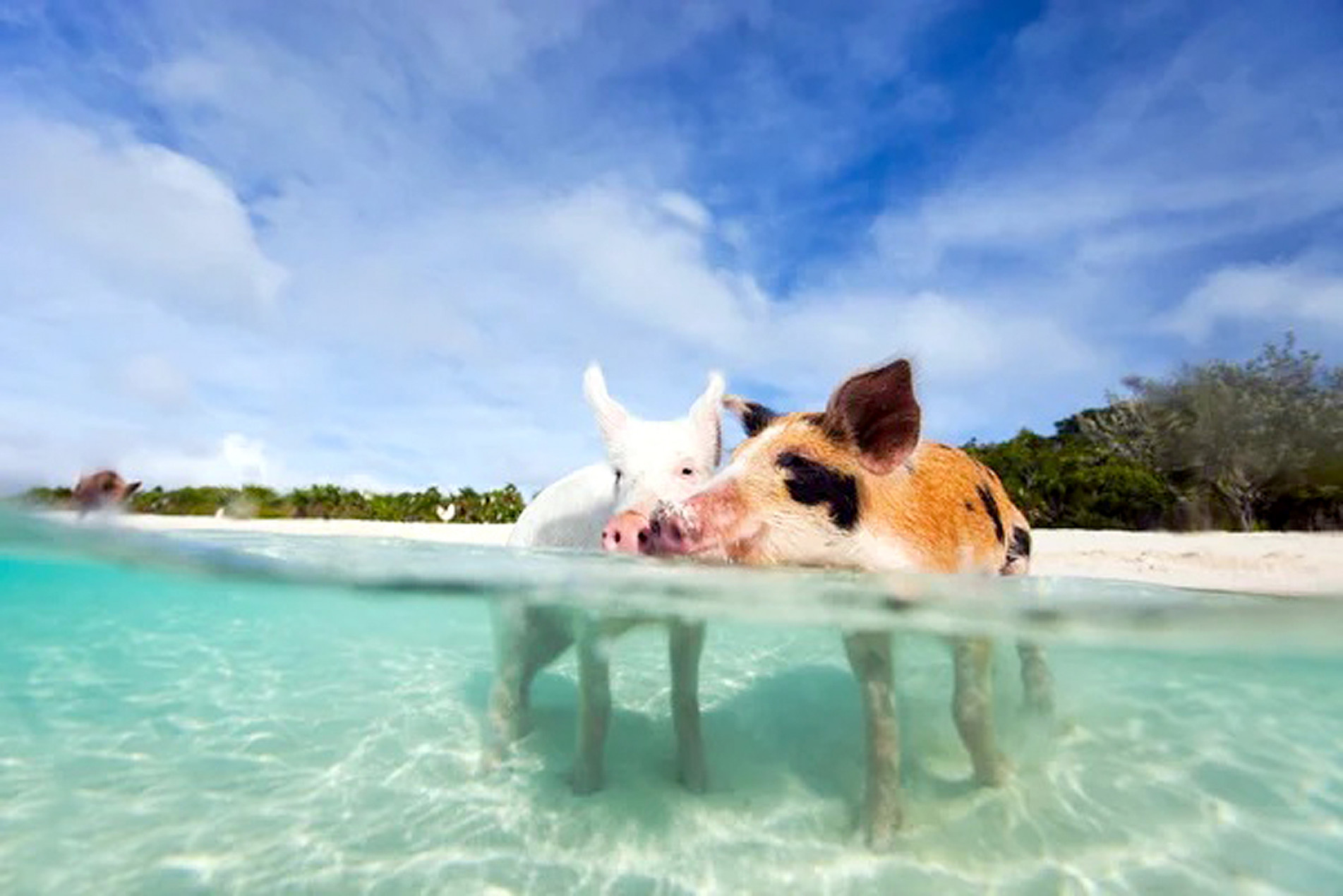E que tal conhecer os moradores mais simpáticos das ilhas? Em um lugar chamado Big Major Cay, vivem porquinhos que adoram nadar! Eles se aproximam dos barcos abanando o rabinho, como se dissessem: “Ei, vem brincar com a gente!” É uma das cenas mais divertidas de todo o Caribe.