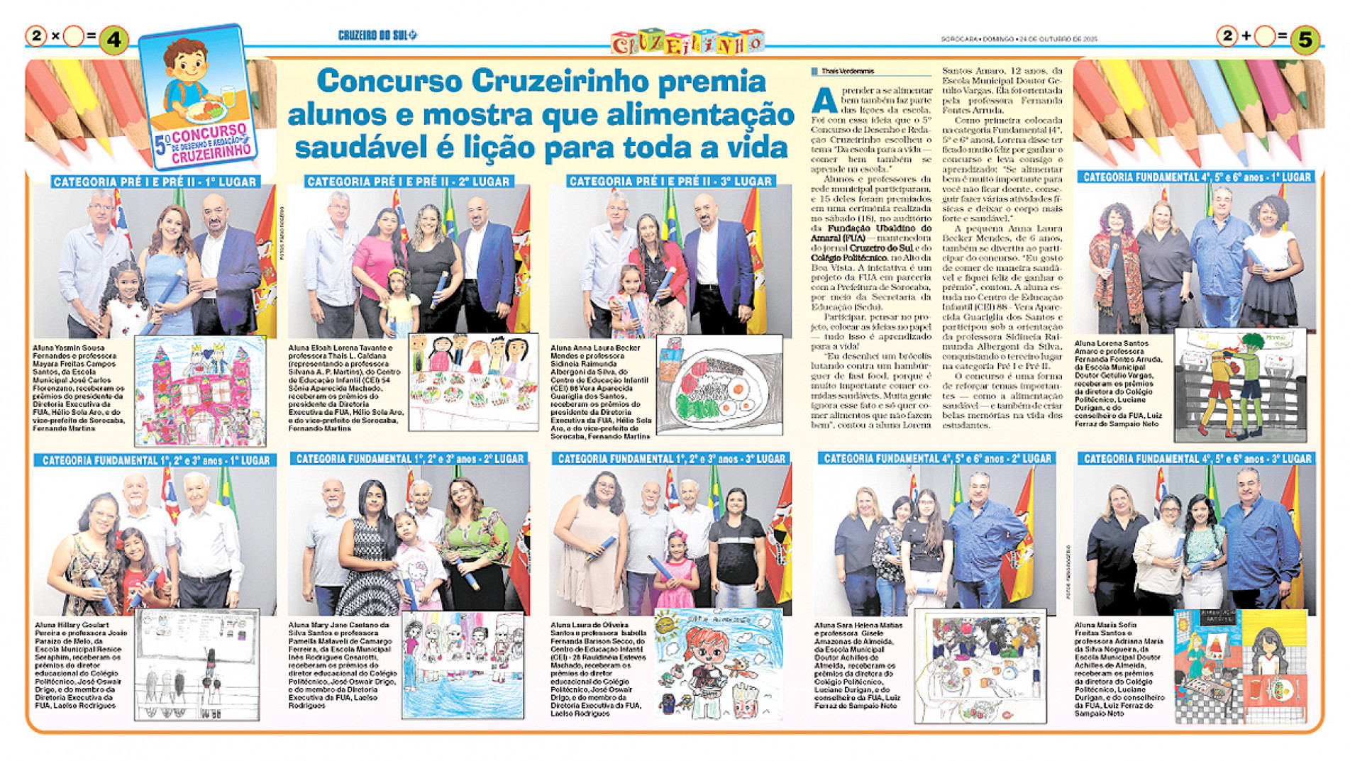 E, para fechar o ano, na edição de 26 de outubro, aprendemos uma lição para a vida toda. Foi a vez do 5º Concurso de Desenho e Redação Cruzeirinho, com o tema “Da escola para a vida — comer bem também se aprende na escola”.