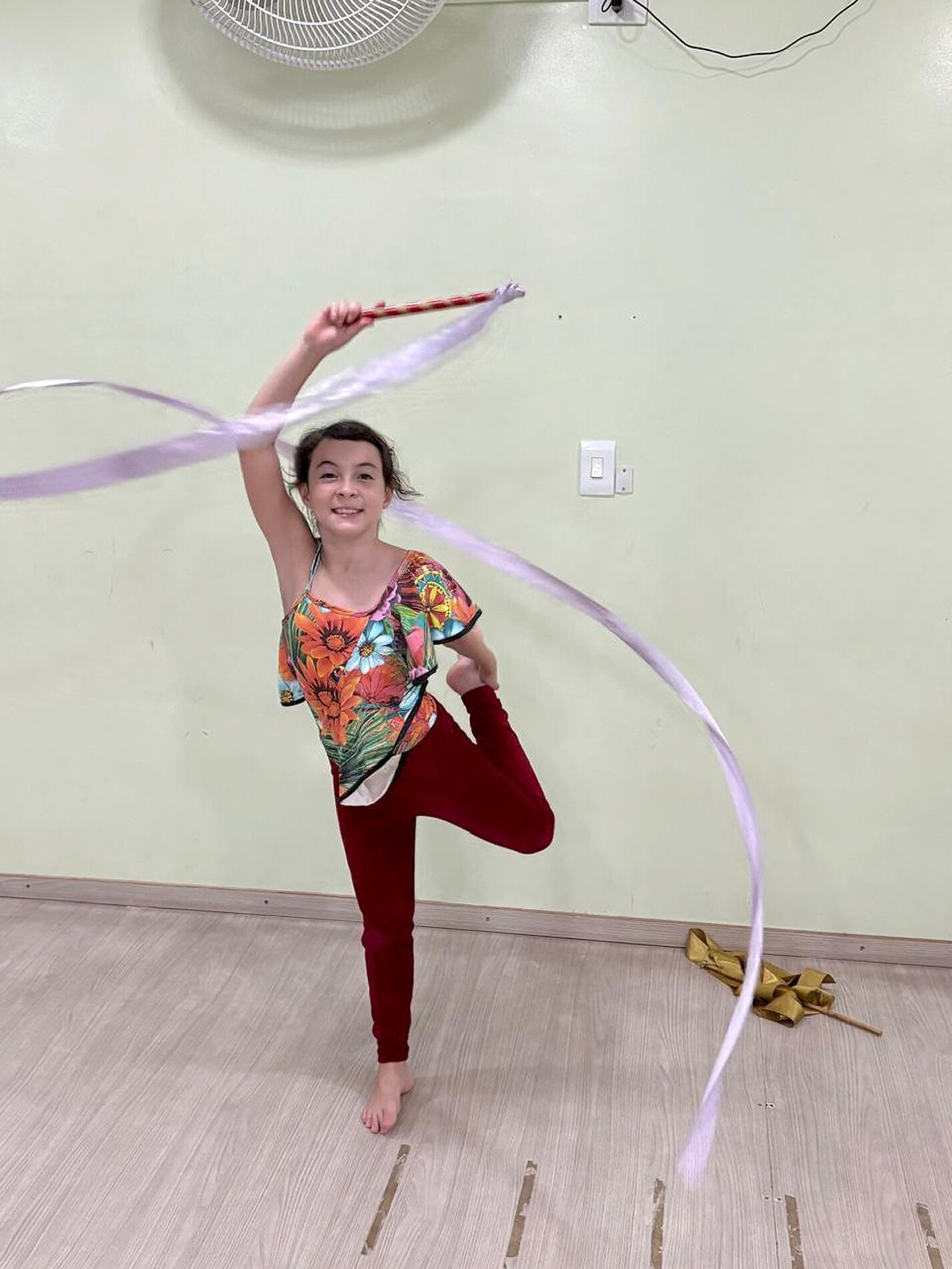 Já Micaela Salvador, de 9 anos, prefere as atividades feitas no chão. “Acrobacia”, responde ao falar sobre a parte da aula que mais gosta. Para ela, os treinos ajudam no desenvolvimento físico. “Tenho ficado mais forte e mais ágil”, diz.