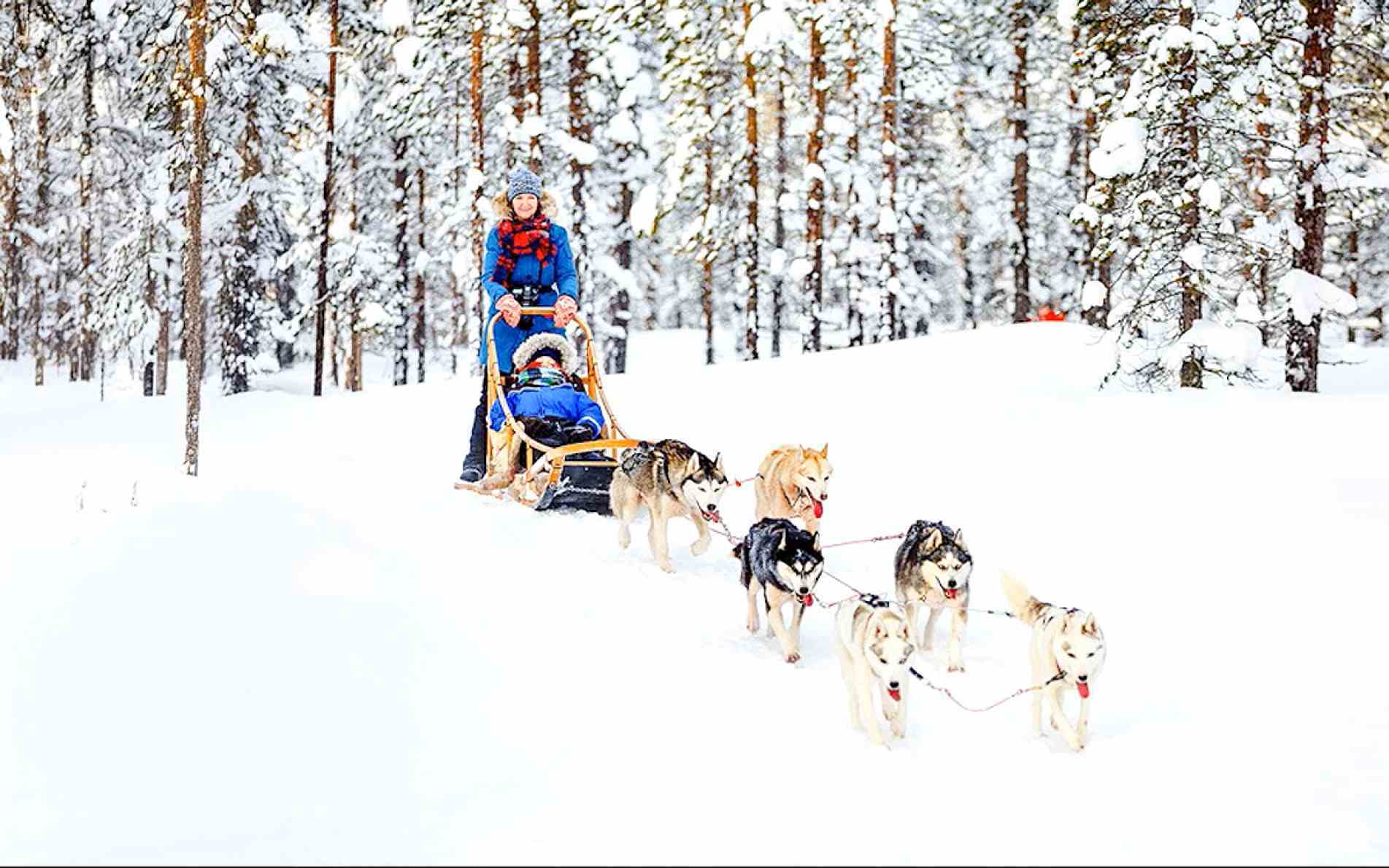 Tem também os huskies, cães fortes e cheios de energia, que puxam trenós na neve. E, em algumas partes, é possível encontrar o simpático Papai Noel, que segundo a tradição mora por lá!