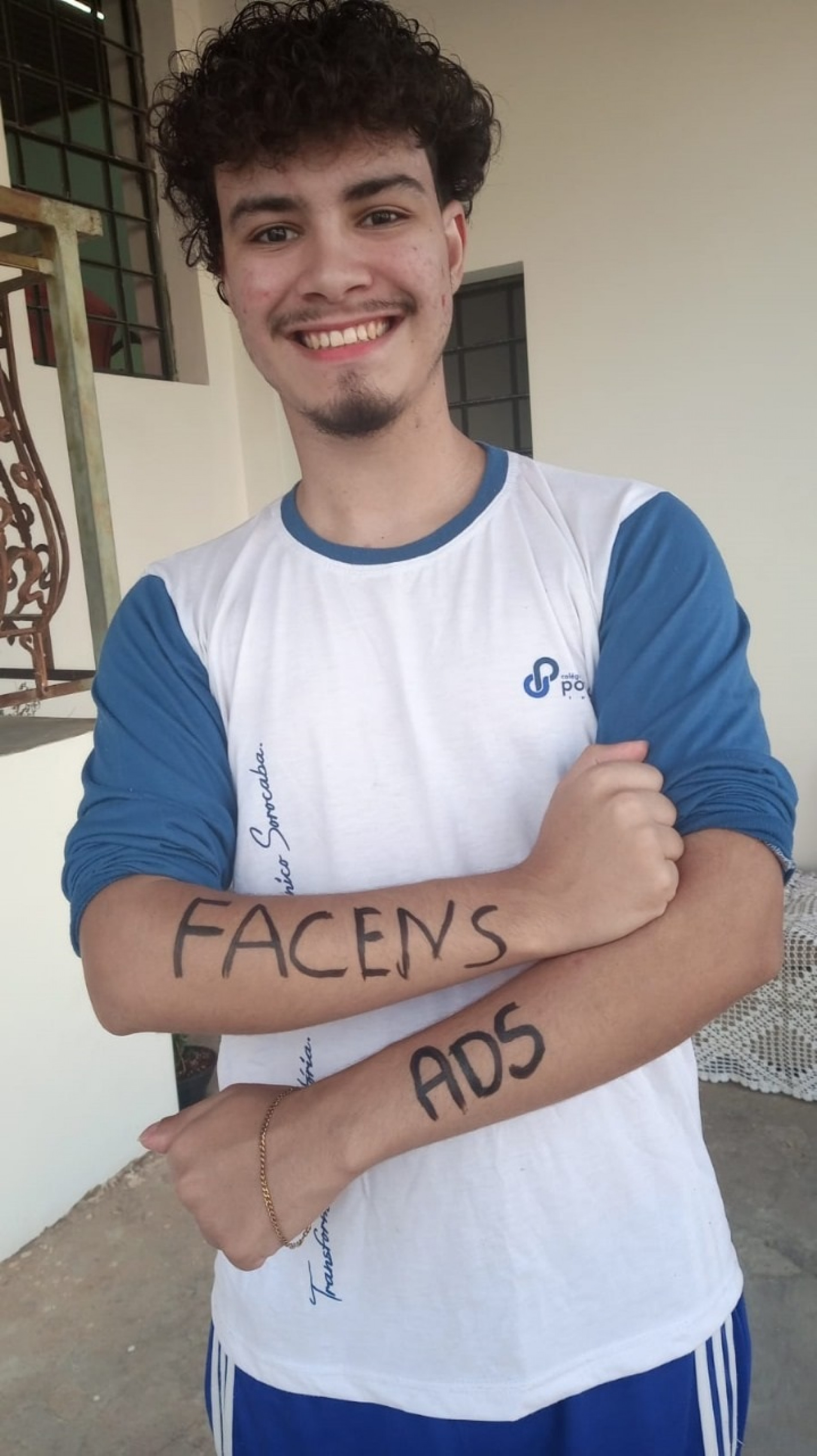O Carlos Eduardo Versiani de Lima, de 17 anos, iniciou os estudos no último dia 19, no curso de Análise e Desenvolvimento de Sistemas, da Facens, graças a nota conquistada no Enem. “Estamos na semana do calouro, conhecendo a faculdade e tendo dinâmicas incríveis”, conta ao falar da nova experiência. Para ele, o desafio é concluir o curso e se inserir no mercado de trabalho. Contudo, por enquanto ainda é tempo de comemorar. “Quando recebi o e-mail da aprovação, e com bolsa, me senti aliviado e gratificado, pois meu esforço tinha valido a pena”, explica.