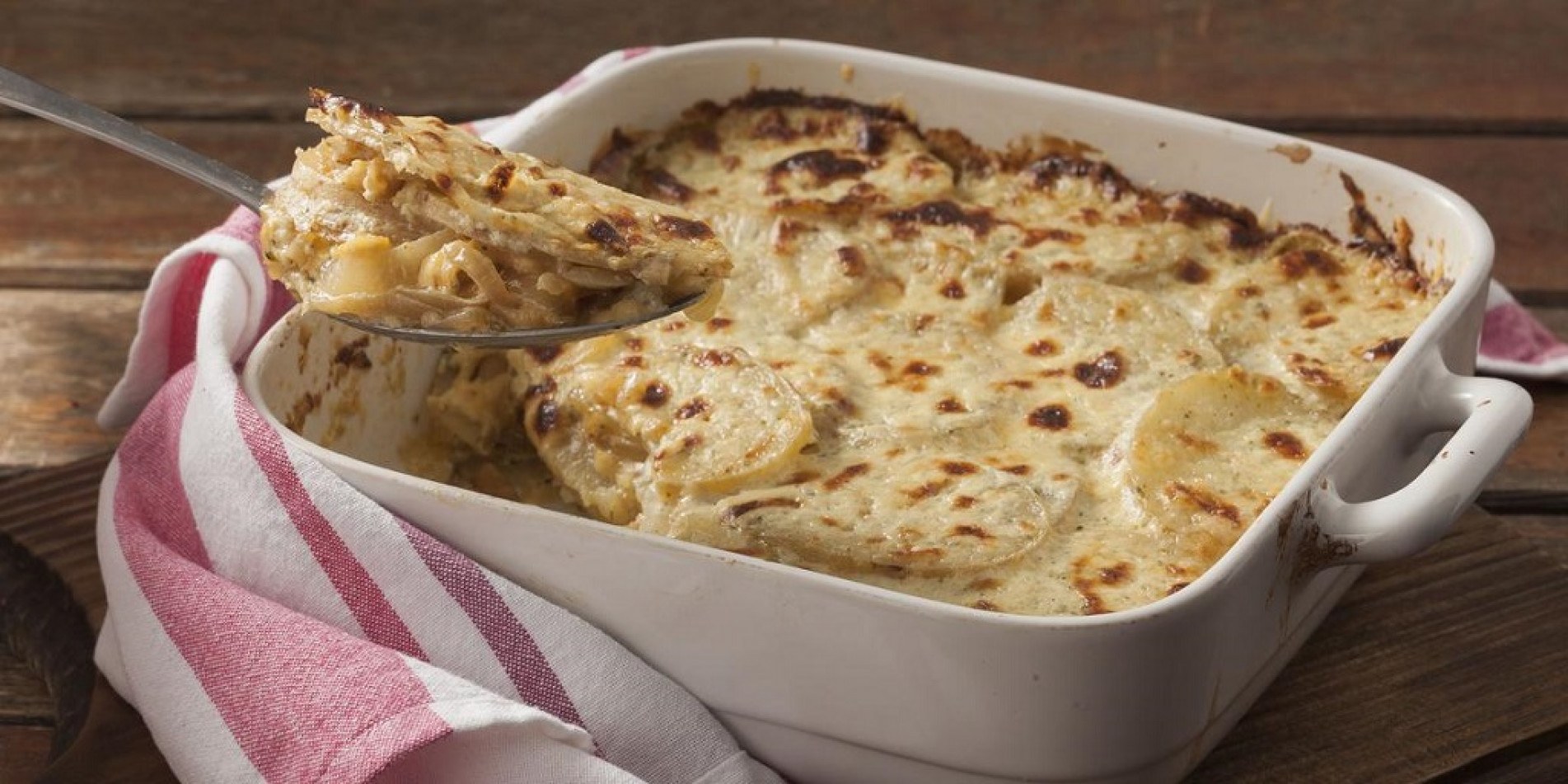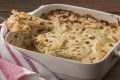 Coloque o restante das batatas e finalize com o creme de leite. Polvilhe o queijo parmesão ralado e leve ao forno médio-alto (200°C), preaquecido, por cerca de 30 minutos ou até dourar. Sirva a seguir.