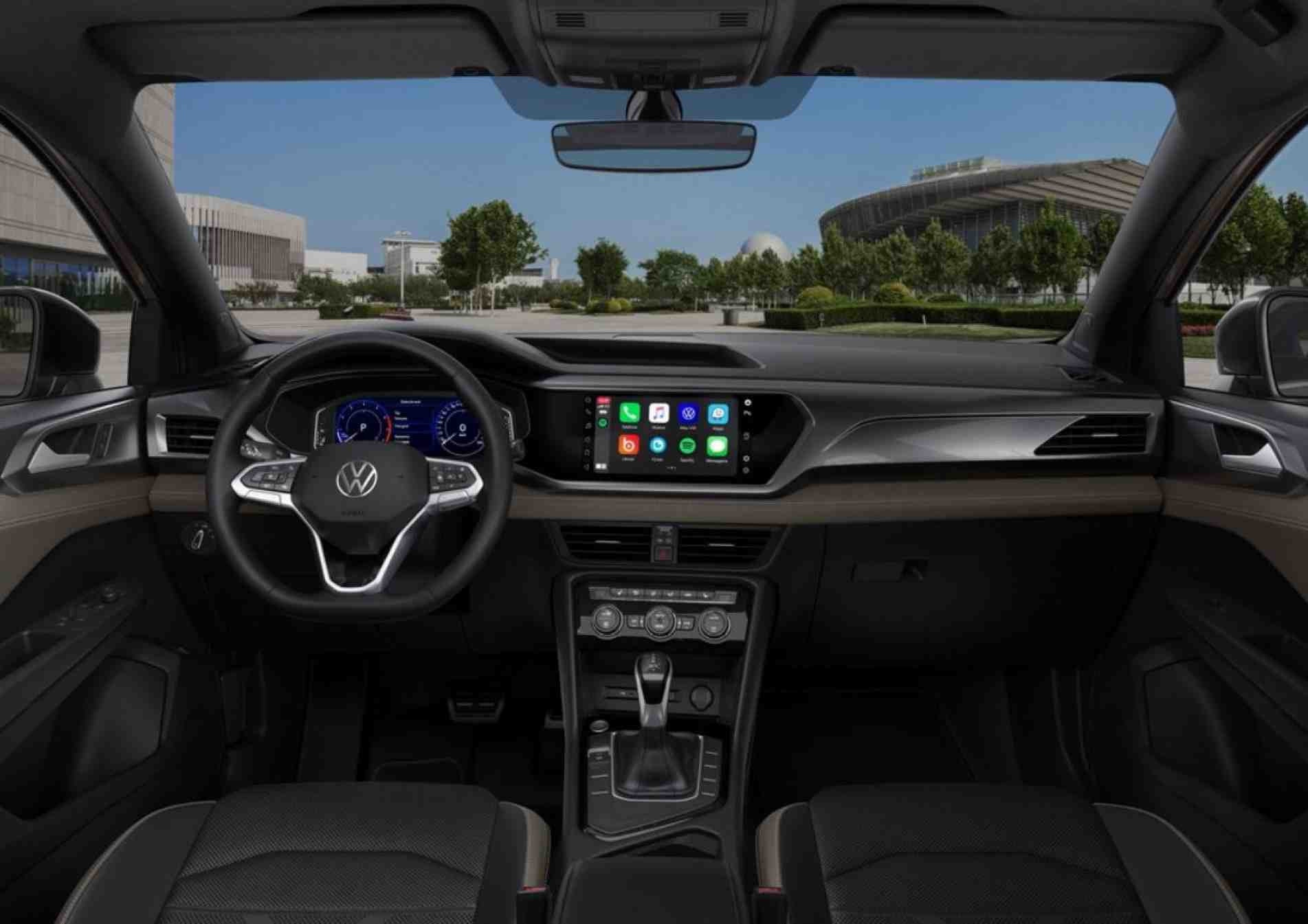 Há também frenagem automática de emergência, acionada quando o carro “percebe” a presença de pedestres à frente ou em caso iminente de risco de colisão frontal. Outro recurso é o que aciona os freios após um primeiro impacto. Isso reduz, significativamente, os danos em acidentes. A lista inclui ainda detectores de tráfego cruzado na traseira, útil em saídas de vagas estreitas. Bem como sensor de fadiga do motorista, controle eletrônico de tração, assistente de partida em rampas e bloqueio do diferencial. Outros destaques são o volante multifuncional, igual ao Nivus e Golf 8, e o painel digital configurável (tela de 10,25’).