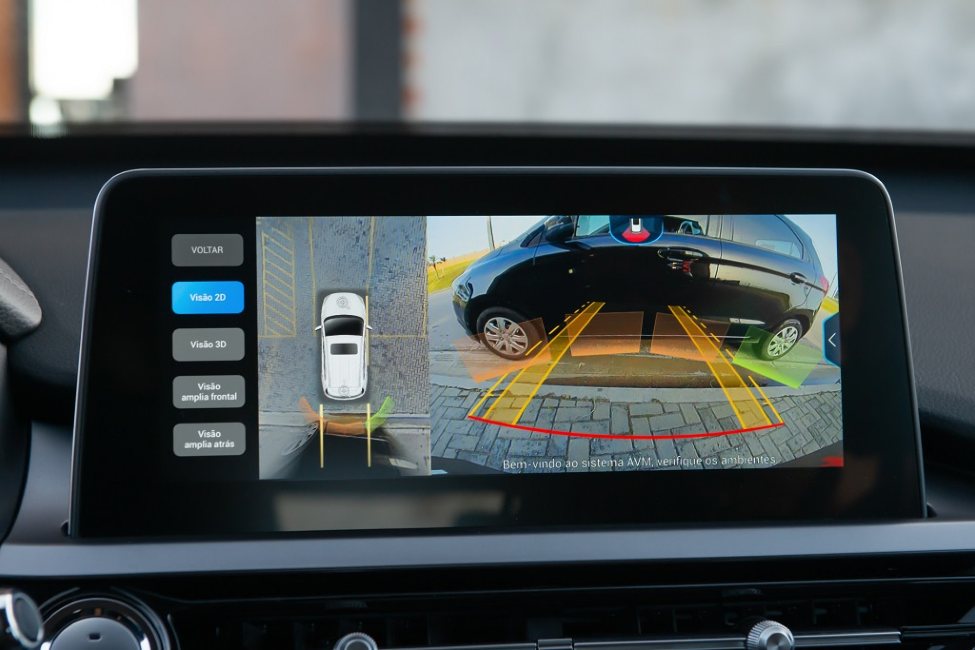 Dentro mudança foi mais radical e para melhor. O painel é todo novo, o acabamento é bastante cuidadoso, com direito a costuras aparentes e superfícies macias. Ganhou ar tecnológico com as duas grandes telas digitais, uma do sistema multimídia – de 10,25 polegadas, comandos por toque e espelhamento de smartphone por cabo – e a outra do painel de instrumentos digital com tela do tipo TFT de 7 polegadas. O console central também mudou, é do tipo flutuante, traz nichos para objetos, duas entradas USB, espaço para apoiar o celular – que parece um carregador por indução, mas não é – uma bonita tela tátil para os comandos do ar-condicionado, mais o botão de estacionamento eletrônico e a alavanca de câmbio do tipo joystick. Tem chave do tipo inteligente, que permite ligar o motor e o ar-condicionado à distância, e ainda sistema de câmeras com visão 360º.