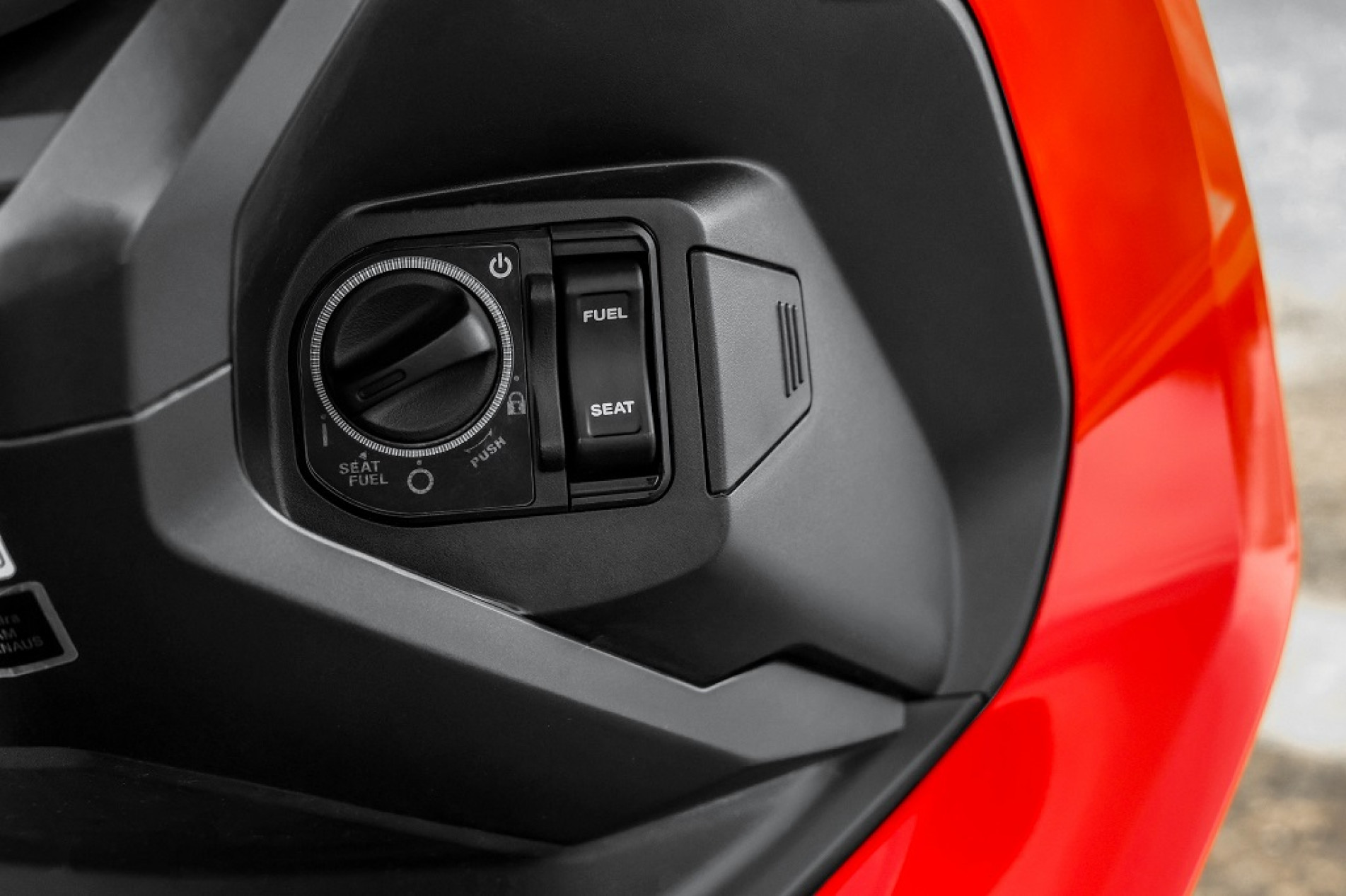 Bem equipada, conta com freios a disco nas quatro rodas e sistema ABS, boa dose de tecnologia com chave presencial, iluminação full led e painel LCD blackout. Tem para-brisa ajustável e espaço de respeito sob o assento, com 27 litros de capacidade, o suficiente para abrigar um capacete.