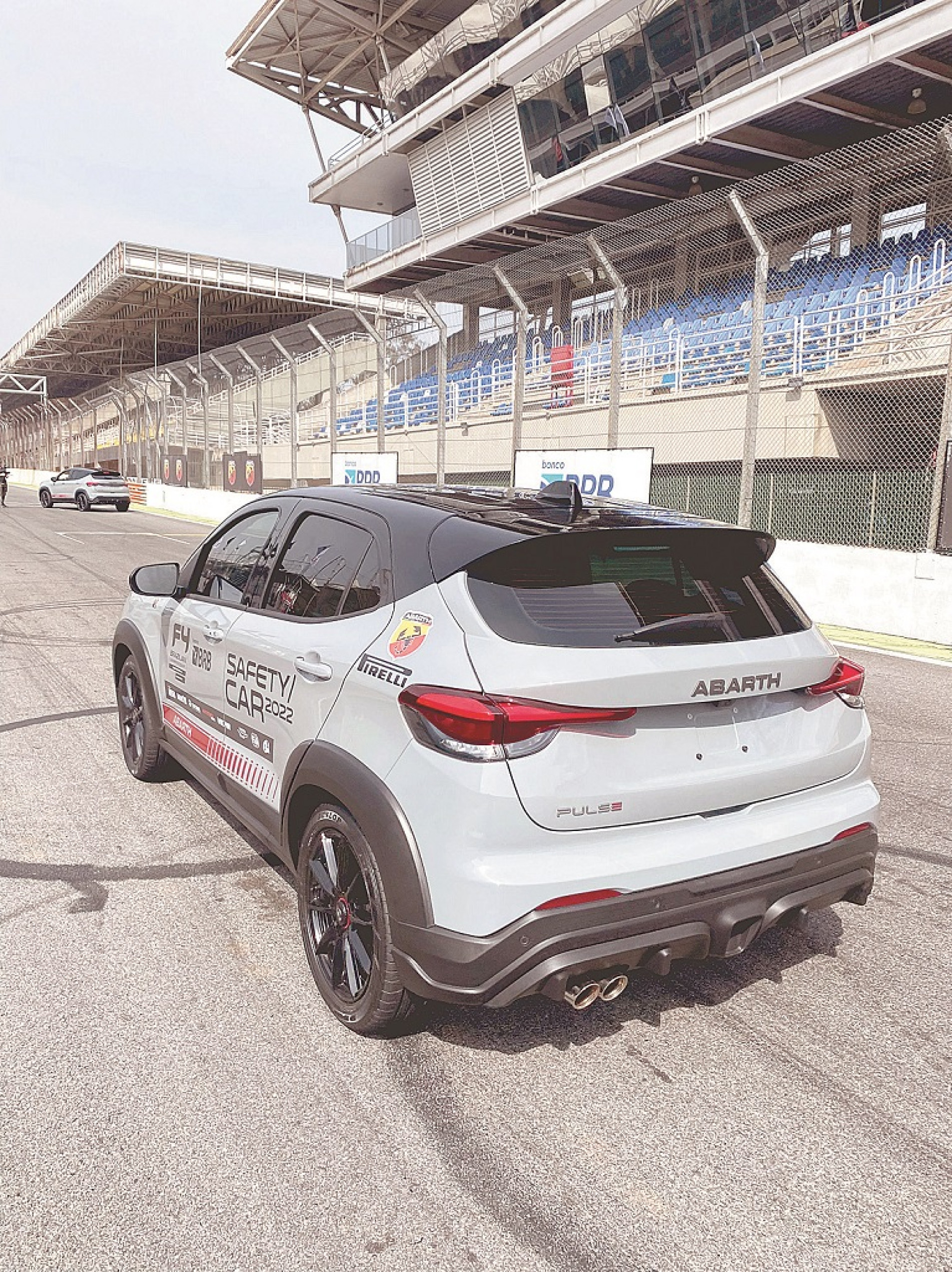 Minha experiência com o Pulse Abarth em movimento foi limitada a uma única volta e, ainda assim, ao lado do piloto de testes. Apesar de não ter tido acesso aos dados sobre alterações nos sistemas de freios e suspensão, ou mesmo sobre faixas de torque e potência, foi possível notar as respostas de aceleração e do trabalho de suspensão bem diferentes das demais versões do Fiat Pulse. “A carroceria entrega um Pulse, mas é outro carro. E o que podemos declarar agora é que o Pulse Abarth utiliza o motor 1.3 turbo de 185 cavalos, o maior da categoria no Brasil, e ainda 27,5 Kgfm de torque. Então, dando essa prévia, o que a gente garante é que ele acelera de 0 a 100Km/h abaixo dos 8 segundos, e supera a máxima de 210 Km/h!”