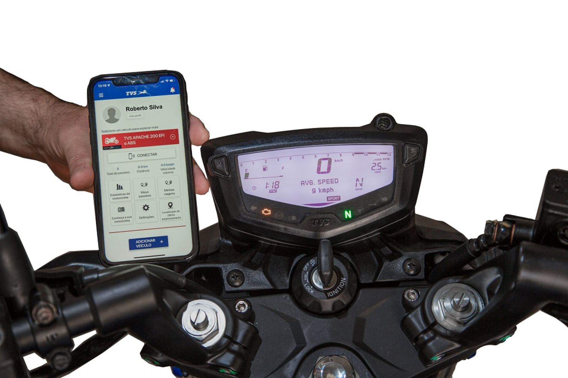 A nova Apache RTR 200 ABS passa a contar também com a exclusiva tecnologia Smart Connect, a qual permite conexão via bluetooth com o aplicativo TVS Connect. Nele, é possível explorar diversas informações sobre a motocicleta e a pilotagem, com funções como alerta de baixo nível de combustível e direcionamento para o posto de combustível próximo, telemetria com estatísticas sobre os trajetos percorridos, alertas de ligações e SMS, entre outros.