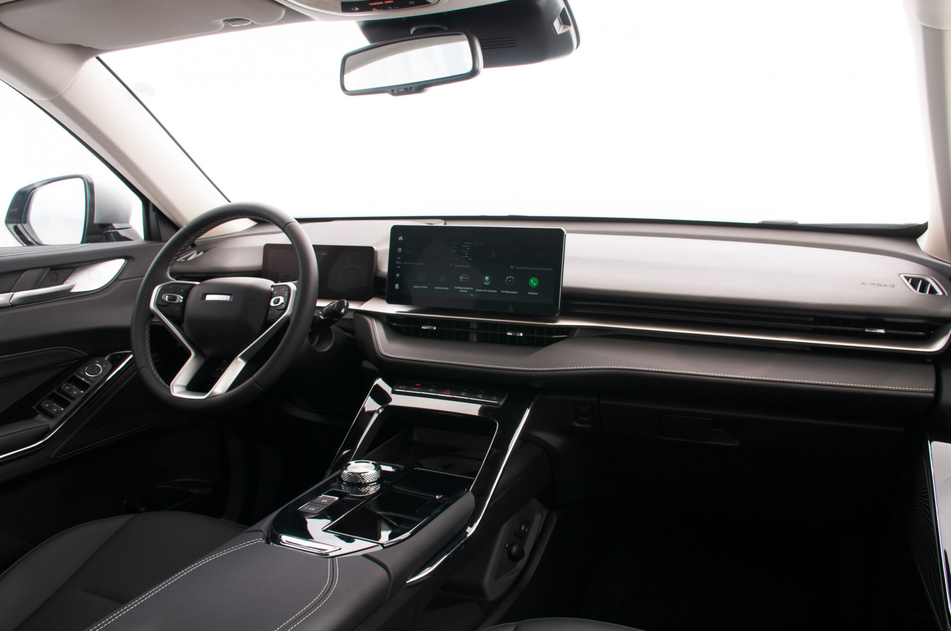Como tem bom entre-eixos, o espaço traseiro é generoso, até para o passageiro do meio. O piso é quase plano, o que garante conforto para as pernas e pés, e há também saída de ar-condicionado traseiro e duas entradas USB. Tem muito cuidado com o acabamento e a proposta visual é moderna, no mesmo nível -- ou até melhor -- do que vemos nos modelos de marcas alemãs, norte-americanas e japonesas, com as quais o H6 quer concorrer aqui. É equipado com duas telas digitais no painel, uma de 10,25” para os instrumentos e outra de 12,3” para o multimídia, que formam um imponente e tecnológico conjunto. O console central é alto e reúne uma tecla para acionamento do freio estacionamento eletrônico e o bonito botão giratório da transmissão automática. Em questão de conectividade, como é de se imaginar, traz tudo o que se espera em um carro desse padrão, inclusive wifi 4G nativo.