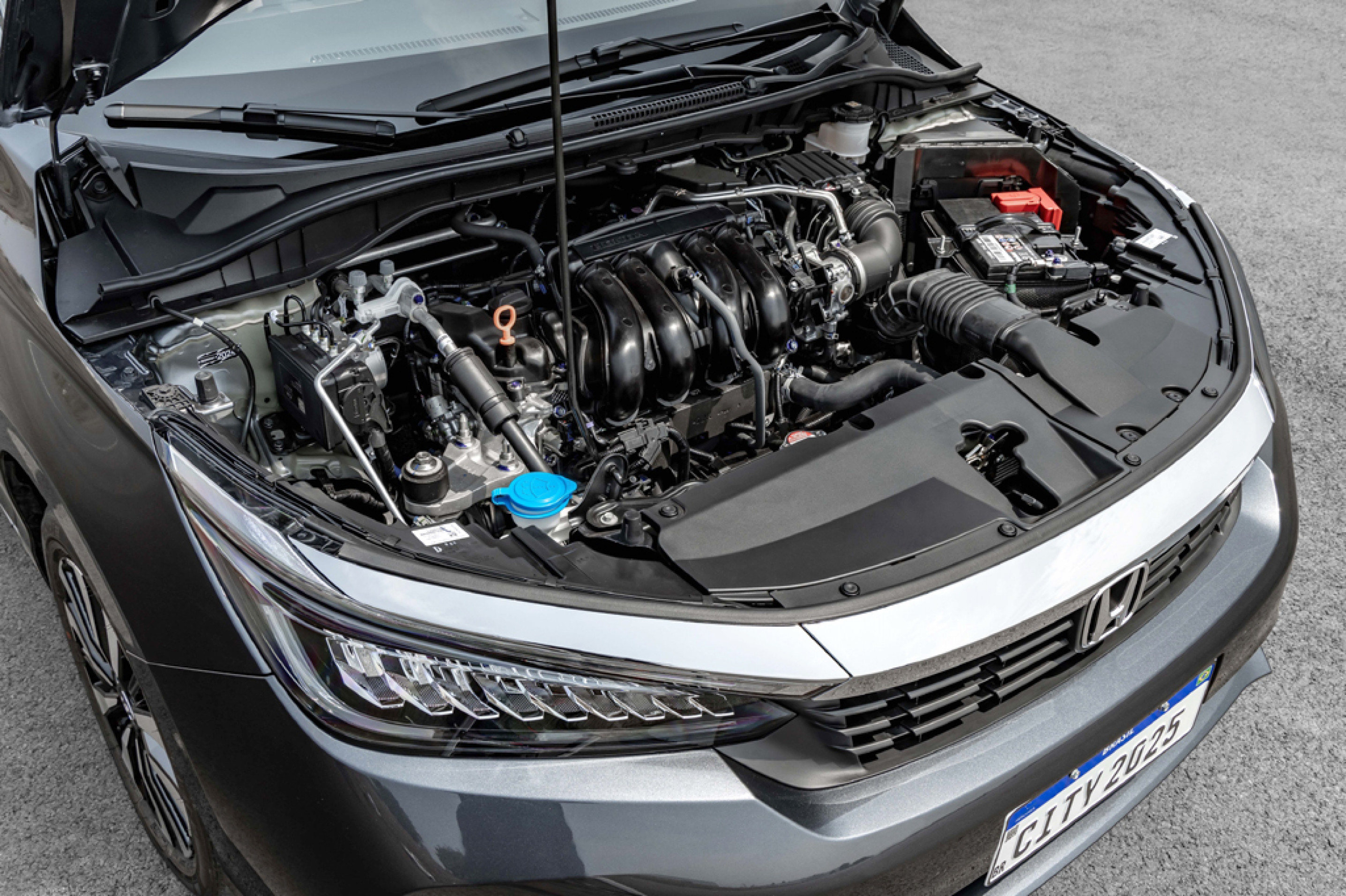 O New City, é bom lembrar, a partir da EX, é equipado com os recursos de assistência à condução do Honda Sensing, como o controle de velocidade adaptativo, assistente de faixa e alerta de colisão com frenagem de emergência, entre outros. Já o conjunto de motor e câmbio segue igual e com as características positivas já reconhecidas. O New City é equipado com o motor 1.5 flex aspirado de injeção direta - 126 cavalos e 15,8 kgfm de torque que trabalha com a transmissão automática do tipo CVT que simula troca de até sete marchas. Tem muita gente que se incomoda com esse conjunto por causa do comportamento da transmissão, que sobe muito o giro do motor nas retomadas. Mas, na prática, é um carro que anda bem e seguro, cumprindo a aceleração de 0 a 100 km/h na mesma faixa alcançada por seus principais concorrentes turbinados. E com aquele atrativo indiscutível: gasta pouco combustível. Na estrada, é fácil superar os 16 km/l com gasolina, número superior ao conferido pelo ciclo Inmetro (12,9 km/l na cidade - 15,5 km/l na estrada).