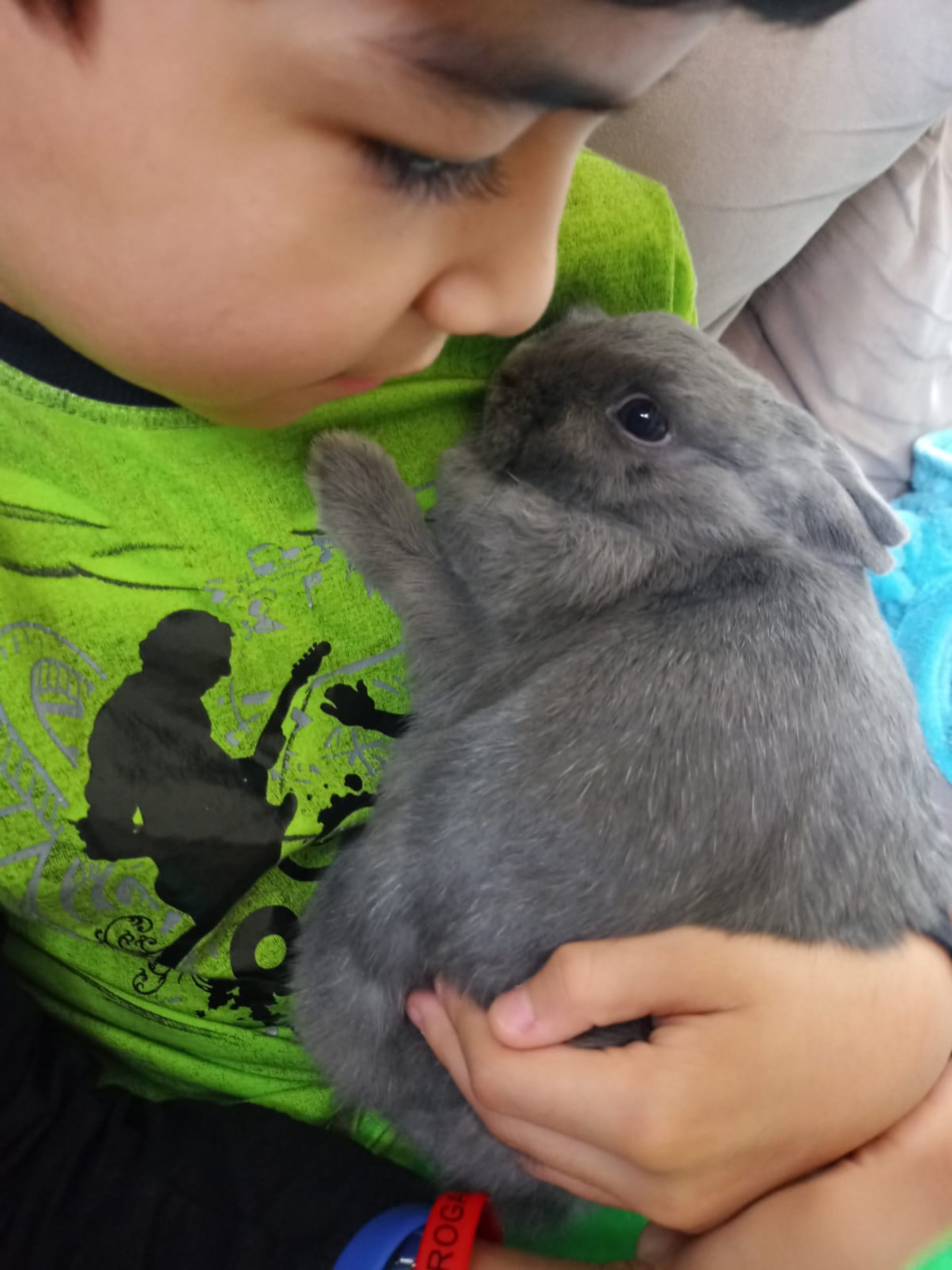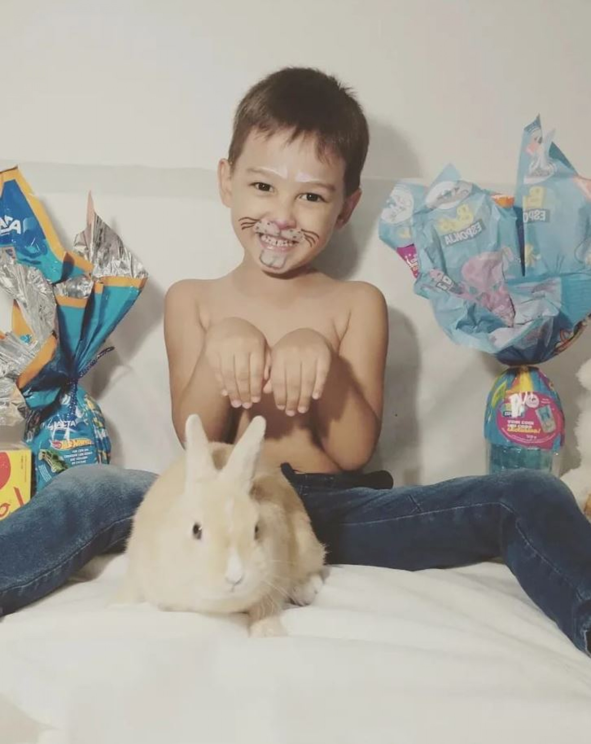 A maior alegria do Gabriel é ver as crianças se divertindo com os coelhinhos. E tem cada história bem legal.