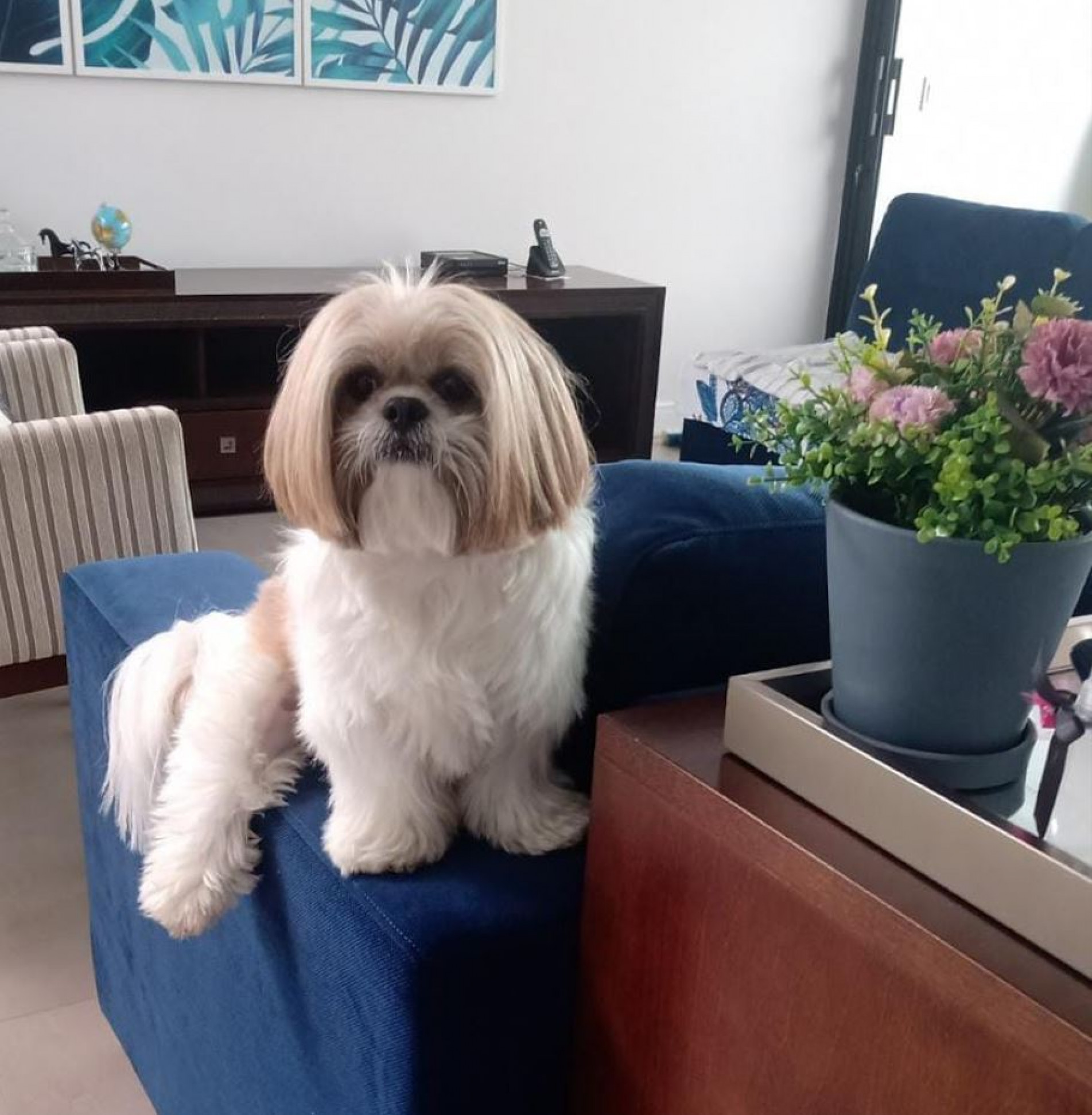 É muito dócil, muito companheiro e ama brincar de correr, no sofá, atrás do ossinho.