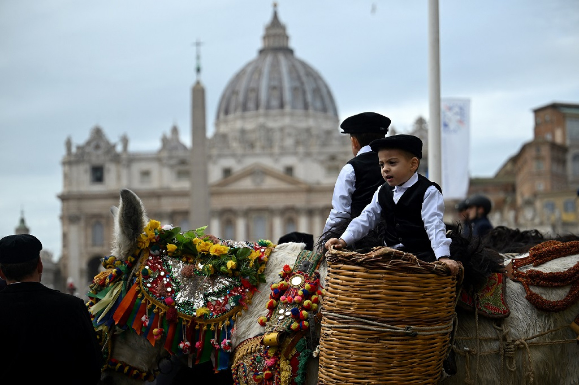 E a turma caprichou, muita gente se produziu bastante e levou a família inteira para participar dessa tradicional celebração. Na Itália, a data é comemorada principalmente por fazendeiros. Na capital, Roma, um estábulo a céu aberto foi montado na praça Pio XII, bem em frente à praça de São Pedro, no Vaticano. Por ali passaram cavalo, vacas, galinhas, ovelhas, coelhos, cachorros e gatos. De tão importante que é a data, a missa foi celebrada por um cardeal. Depois, os animais seguiram em procissão, escoltados por policiais, até o momento tão esperado da benção. Nem o frio e a chuva atrapalharam o ato de fé.