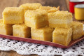 Coloque em forma retangular (20 cm x 30 cm) untada com manteiga e polvilhada com fubá e leve ao forno médio (180ºC), preaquecido, por cerca de 30 minutos.