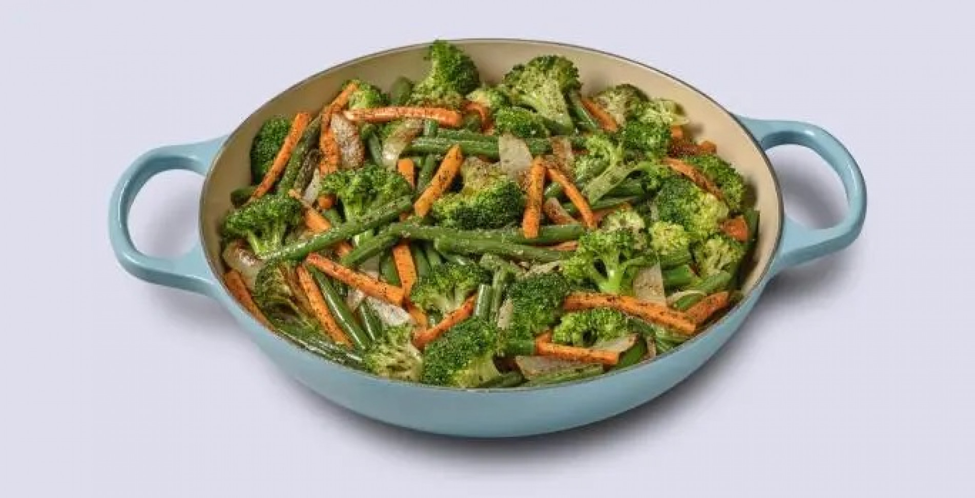Em uma panela, cozinhe os brócolis, a cenoura e a vagem separadamente, sem amolecer demais.