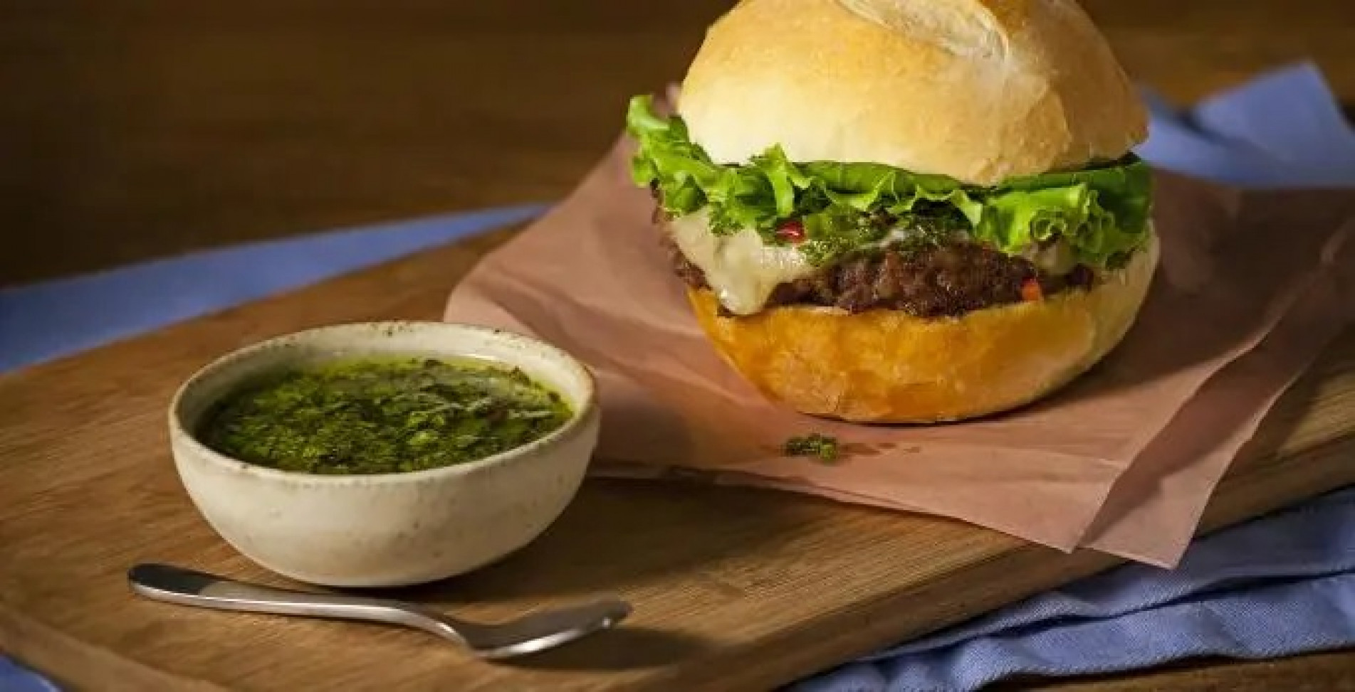 Corte os minipães ao meio, coloque o hambúrguer, um pouco de chimichurri e do mix de folhas. Sirva.