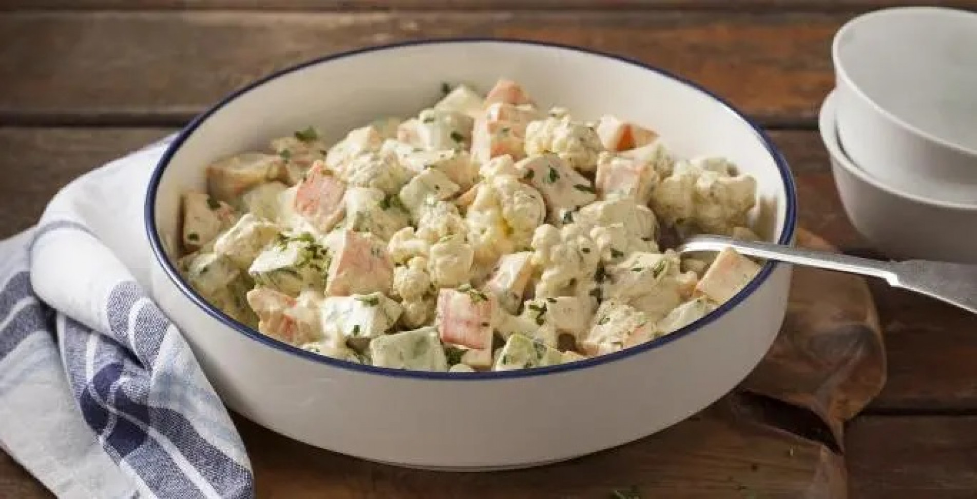 Acrescente a couve-flor, as cenouras, o suco de limão, a salsa, o curry, o sal e o creme de leite e misture bem.