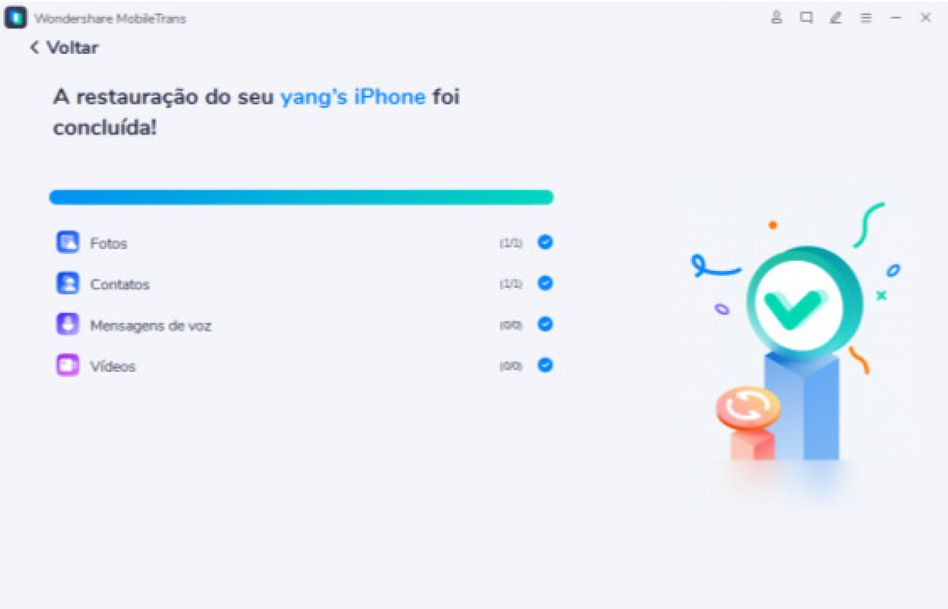 Uma das maiores vantagens de usar o Wondershare MobileTrans é que, absolutamente tudo que foi compartilhado, pode ser recuperado de forma fácil e com poucos cliques.