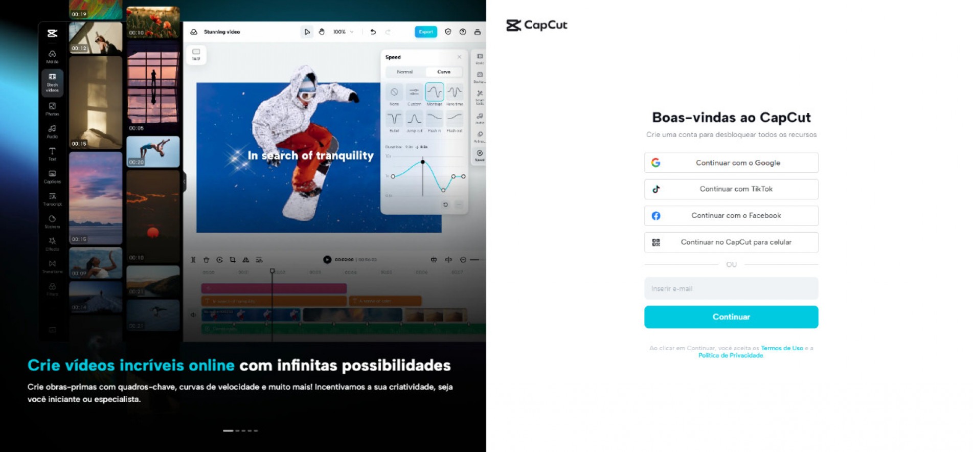 Agora, vale ressaltar que para utilizar os recursos IA presentes no CapCut Online é necessário criar uma conta na plataforma. Com a sua conta criada, você já pode começar a utilizar todos os seus recursos gratuitamente!