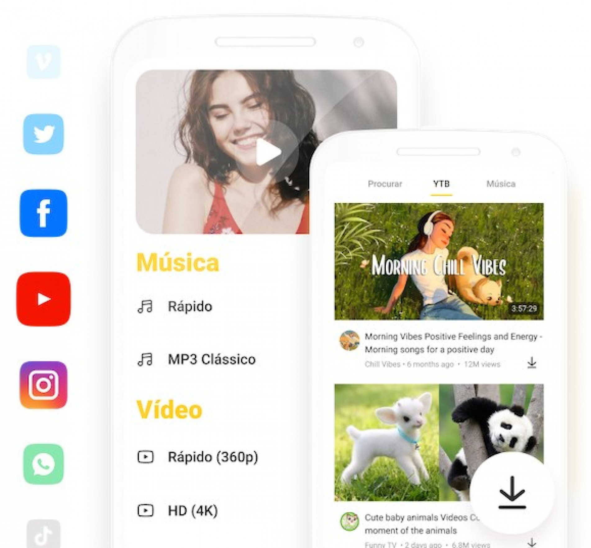 O Snaptube é integrado com mais de 50 sites e redes sociais, permitindo que você consiga baixar música grátis do SoundCloud, Youtube, Facebook, Instagram, TikTok, entre outros.