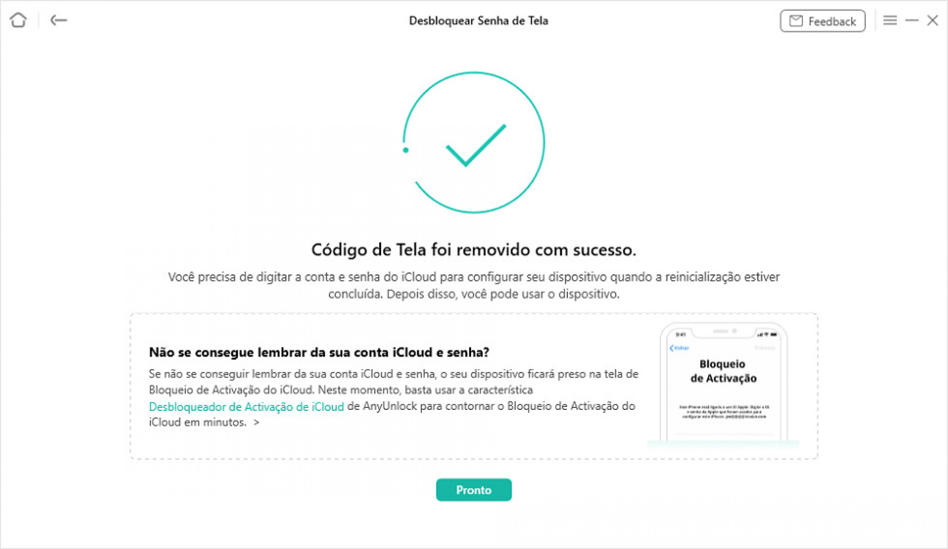 Passo 3: O software guiará você através do processo de remoção do bloqueio, permitindo que você configure o dispositivo com seu próprio conta icloud.