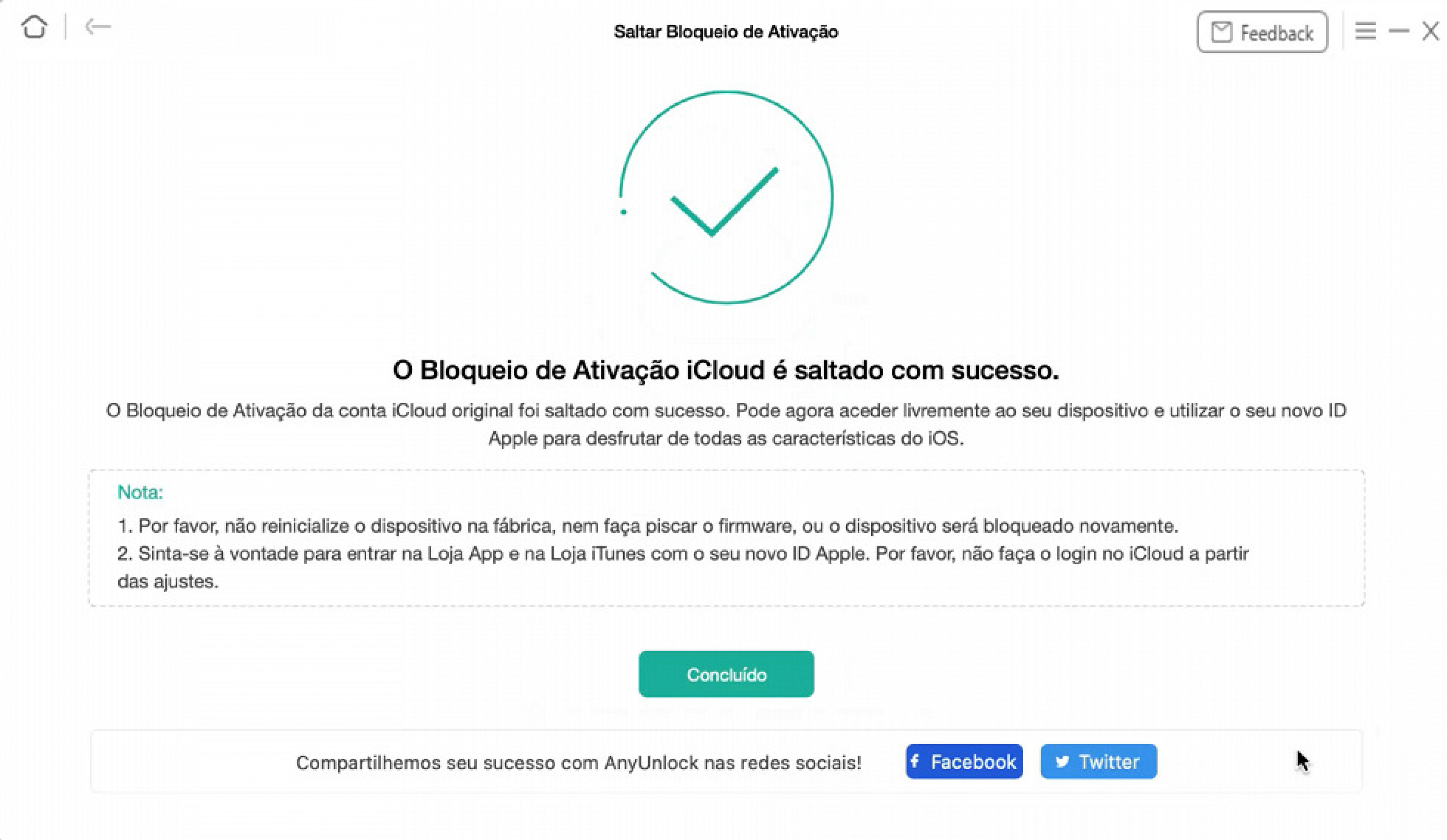 Passo 1. Baixe AnyUnlock gratuitamente e execute-o. Depois, conecte seu iPhone/iPad ao computador usando um cabo USB. Clique na opção que diz Saltar Bloqueio de Ativação na tela inicial.