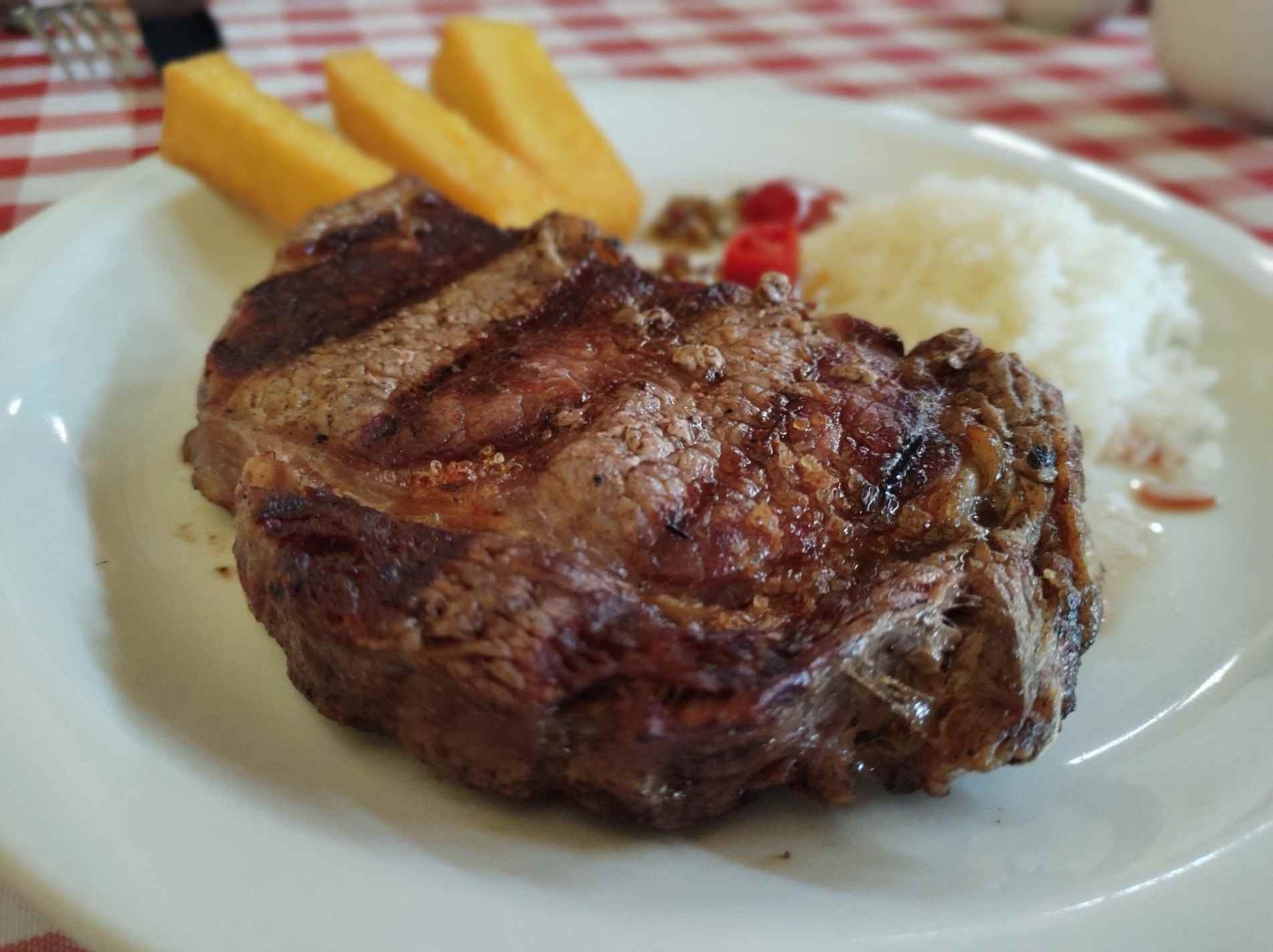 O cardápio “a la carte” destaca as raças Angus e Hereford. Há categorias premium e porções individuais ou para mais pessoas. Entre os cortes: picanha bonina e suína, ancho, chorizo, bom bom de alcatra, mignon, fraldinha, linguiça Bragança, salmão e tilápia. Os acompanhamentos são os tradicionais arroz, farofa, polenta, mandioca e salada de folhas com tomate e cebola. Para o feijão há variações: temperado com picanha, tropeiro ou tutu. Curiosa por conhecer a receita da Dona Maria, sugerida pelo garçom, fiquei com o tutu. De fato uma delícia. Palmas para ela! O chorizo veio perfeito, ao ponto, bem passado por fora, rosado e suculento por dentro.