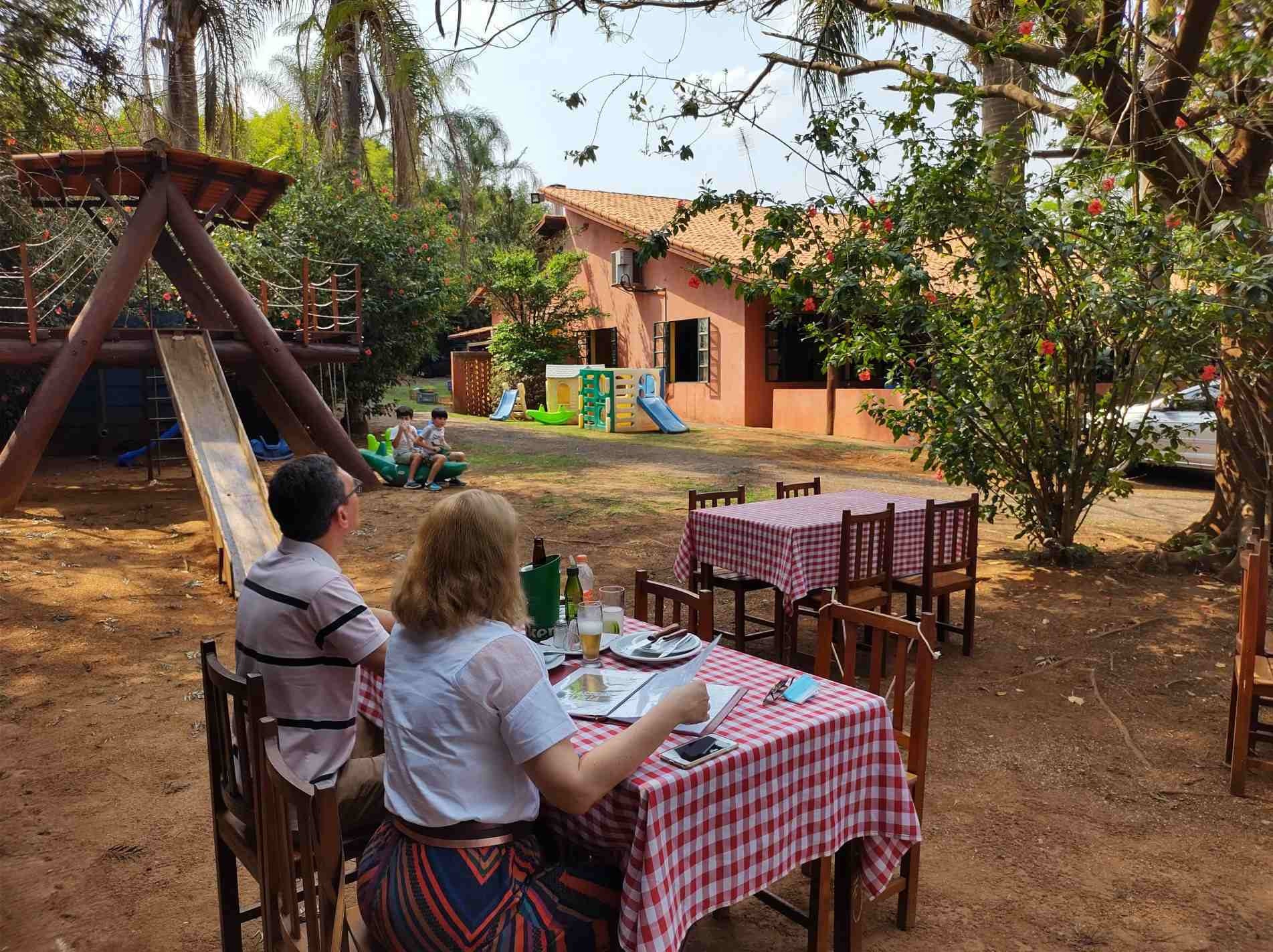 Estes são os ambientes da Picanha na Villa, churrascaria estabelecida em uma chácara, no bairro do Éden, desde 2006. O salão é arejado, com janelas e portas envidraçadas e pé-direito alto. A varanda é coberta e, no jardim, as mesas são colocadas entre as árvores ou sob quiosque, perto da área de lazer das crianças.