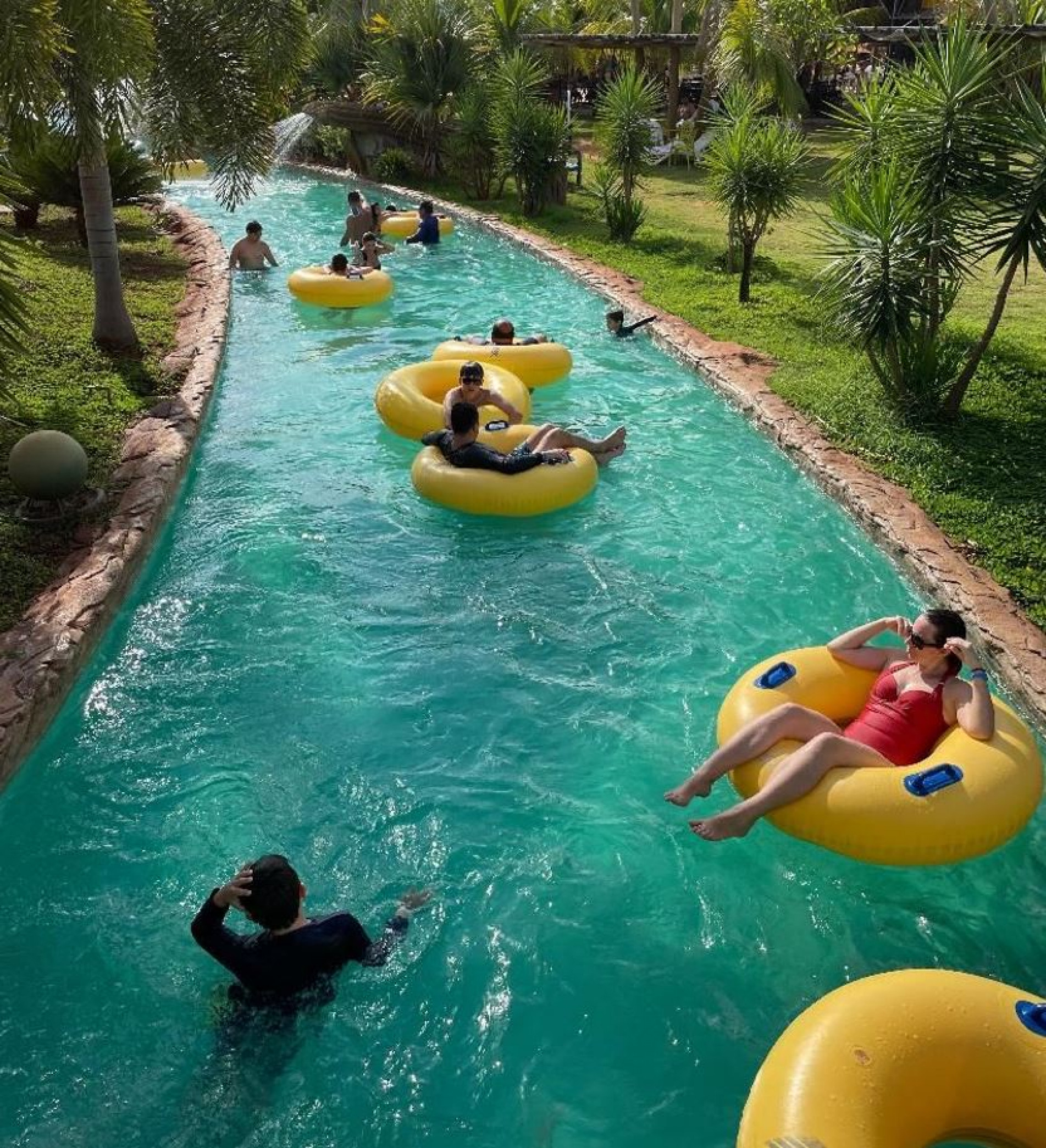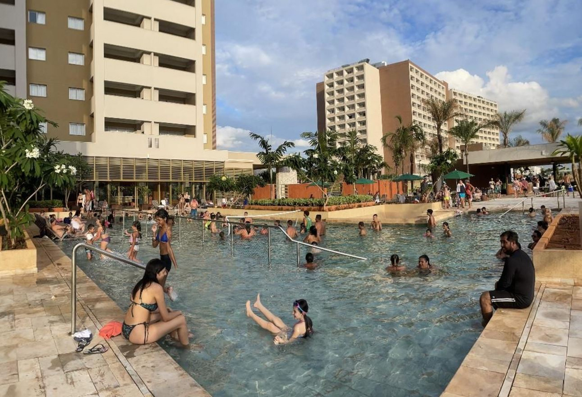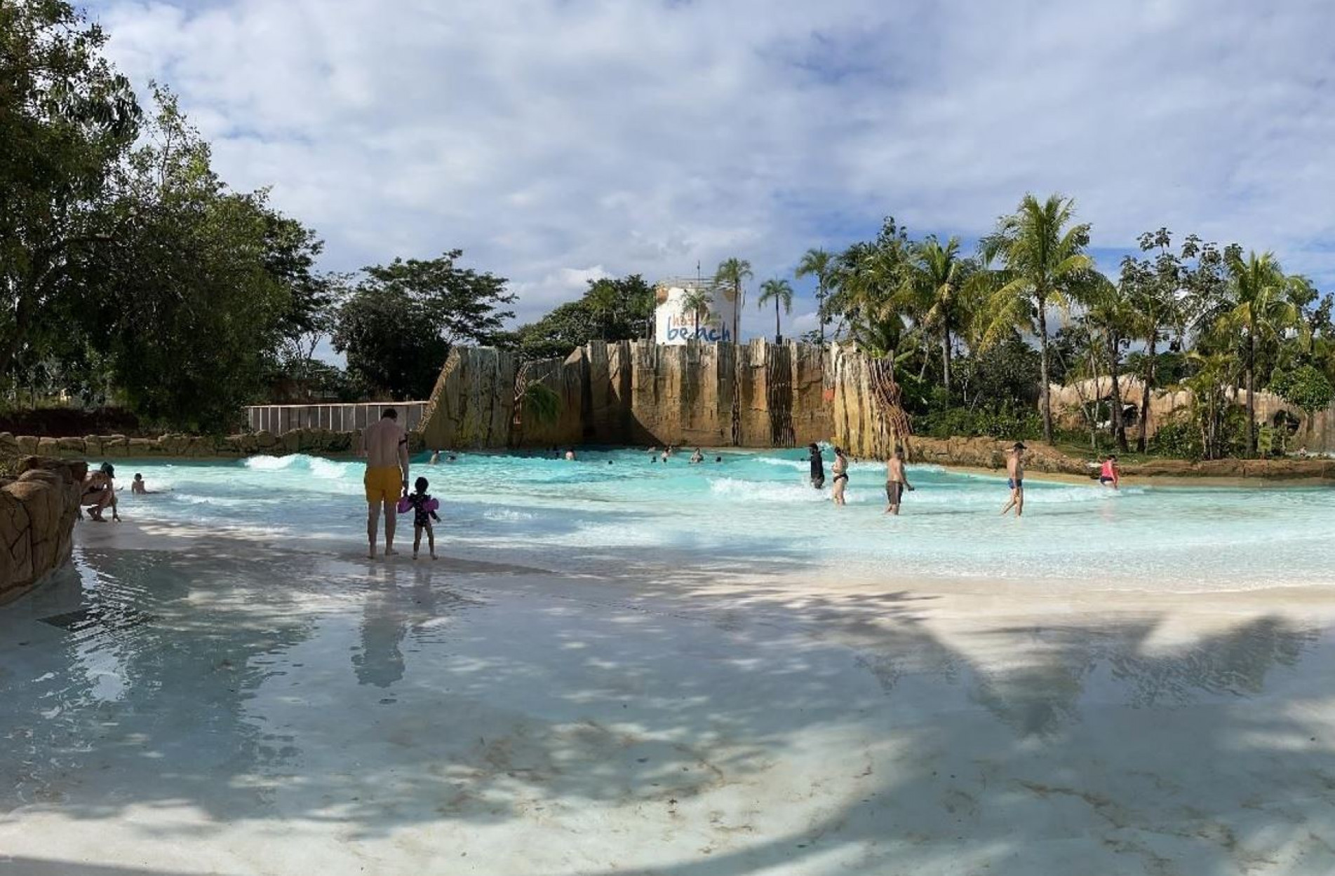 É praticamente uma praia no interior, com areia branca e fofinha, coqueiros, prainha de ondas, quiosques de alimentação e bebidas, além de piscinas com diferentes perfis, que atendem crianças, adultos e idosos.