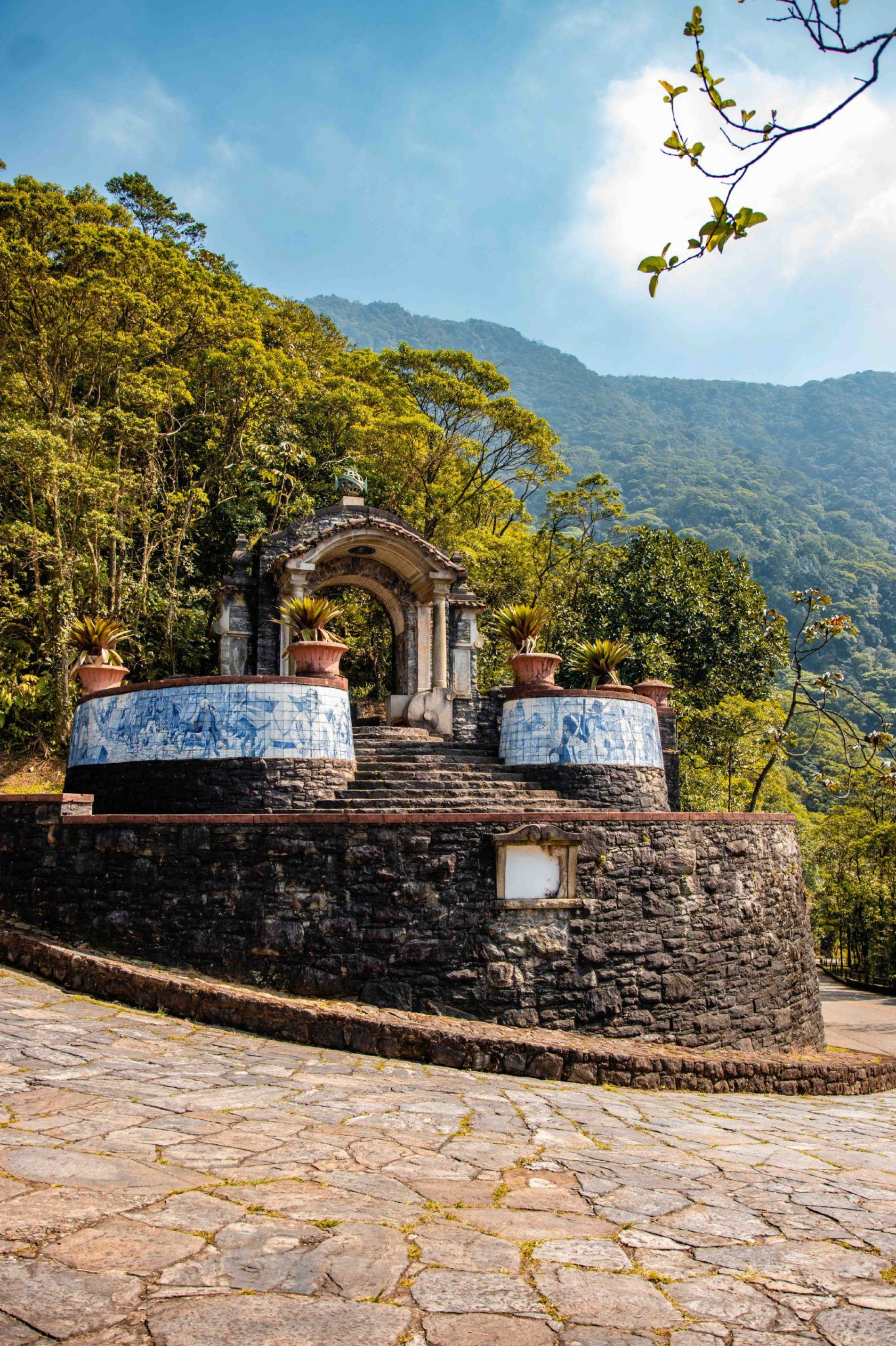 Depois de sobrevoar o Pouso de Paranapiacaba (um dos nove monumentos históricos que celebram a Independência do Brasil) e a Estrada Velha de Santos, a aterrissagem é nas Ruínas, monumento que ainda está em processo de restauração.