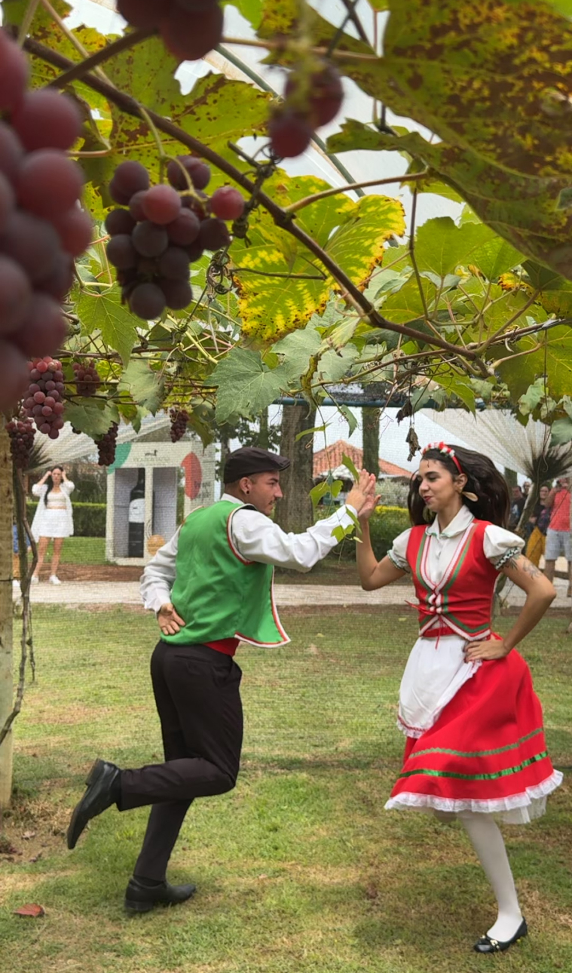 "Casais, amigos, família com crianças; a vindima é um dos momentos mais aguardados. É uma festa de confraternização", diz Túlio. Após a pisa, a programação inclui almoço no restaurante italiano La Pasta da Don Patto. É um passeio para experimentar a vindima e guardar boas recordações.