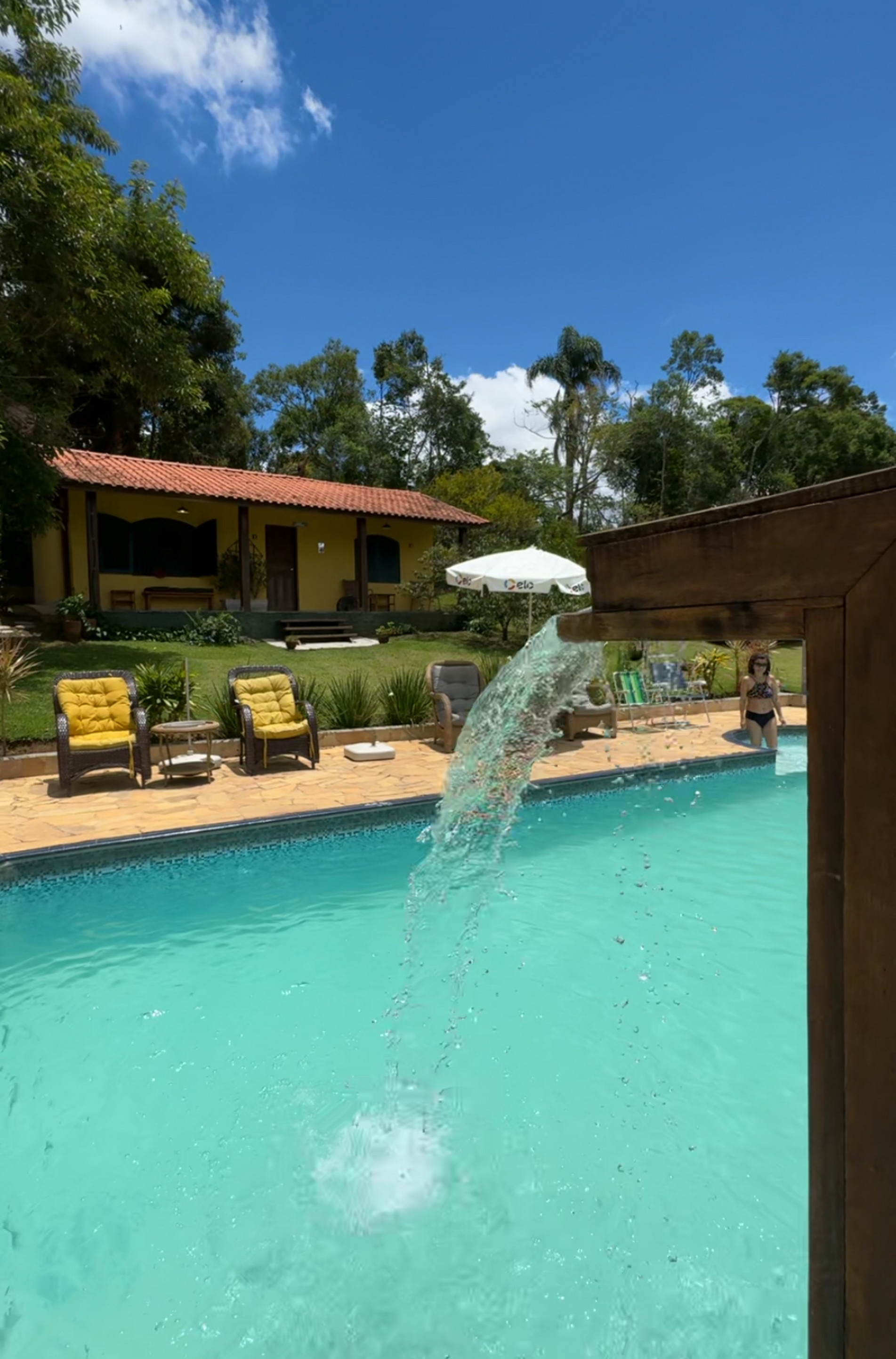 Os hóspedes podem saborear comida caseira, petiscos, café da manhã com pães, bolos e geleias produzidas no sítio, além de produtos artesanais como mel, iogurte, queijos e ovos caipiras.
