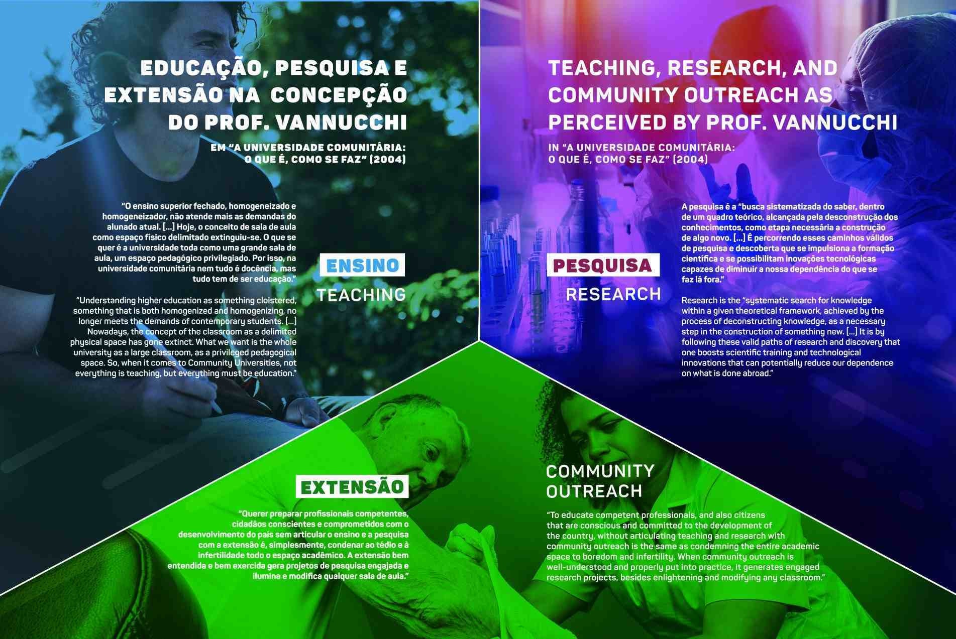 Mas é preciso sempre insistir que, para a Universidade Comunitária, extensão é pratica de mão dupla: a universidade oferece seus conhecimentos à sociedade e esta lhe apresenta o que ela sabe por experiências sofridas e todos os seus valores de