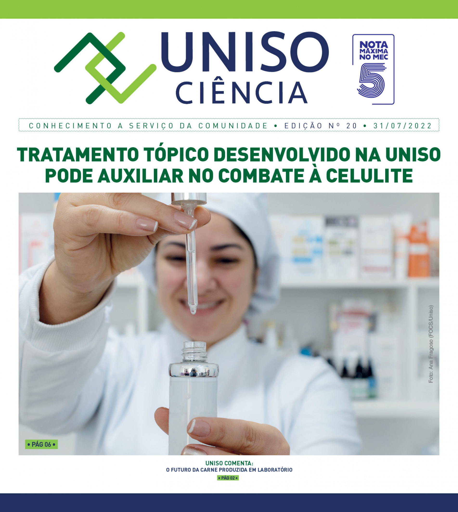 Outra reportagem apresenta o resultado de um estudo desenvolvido no Programa de Pós-Graduação em Ciências Farmacêuticas da Uniso, cujo objetivo foi criar um gel tópico para o tratamento da celulite. O produto cosmético utiliza como base a cafeína, capaz de vencer as barreiras da pele e assim resultar num tratamento não invasivo. A cafeína é capaz de “quebrar” a gordura, evitando que as células adiposas se transformem em celulite, e por isso ela já é utilizada em várias formulações cosméticas.