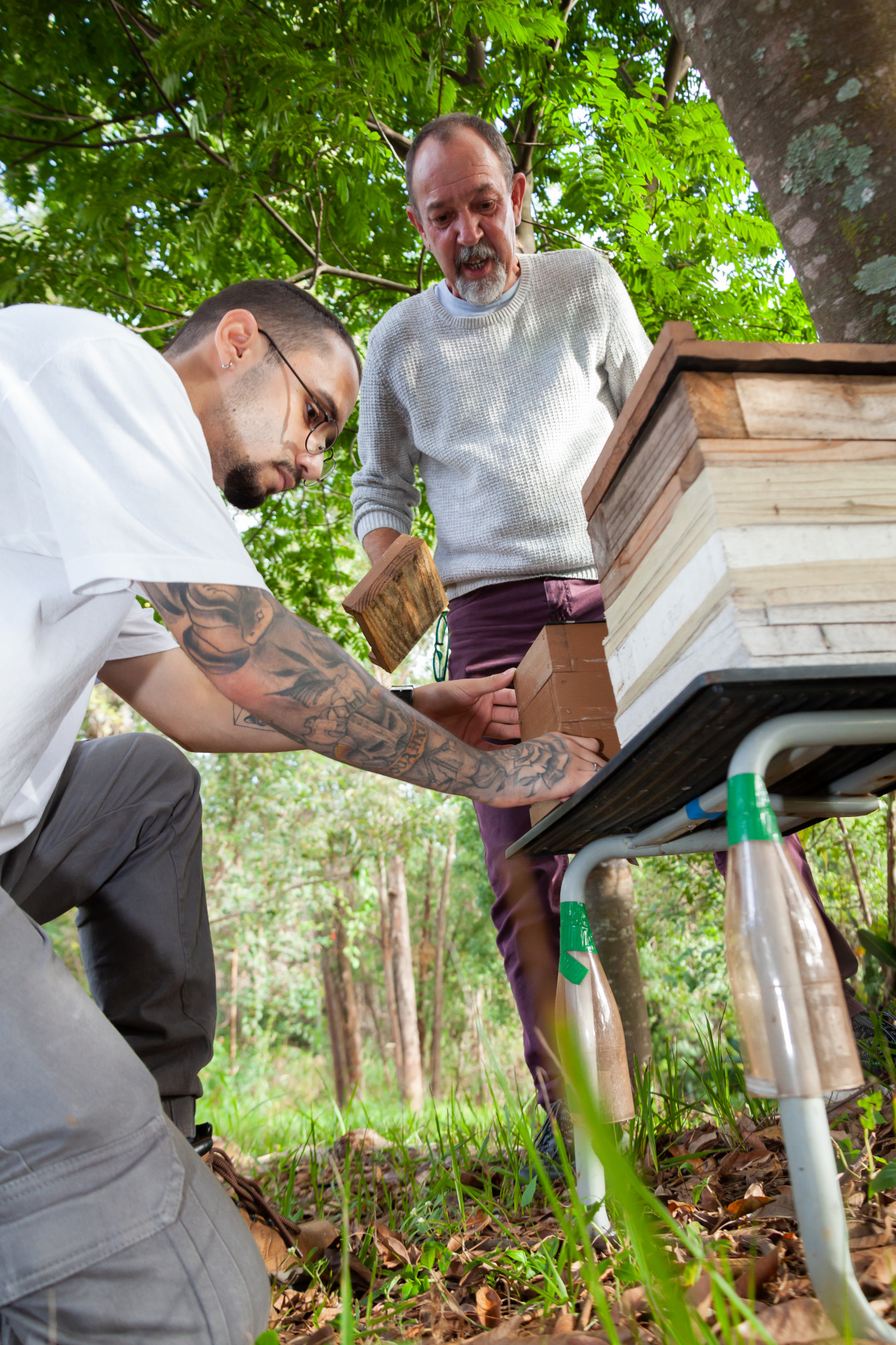 Por fim, quanto à extensão envolvendo abelhas sem ferrão, um projeto digno de nota é o Uniso Crop Care Service (UCCS), idealizado em 2019 pelo professor doutor Lucas Mateus Rivero Rodrigues, cuja área de especialidade é a fitopatologia. O projeto, que também conta com a participação de Fischer, teve início efetivo em 2020 e, desde 2021, passou a incluir a comunidade externa, com o objetivo de auxiliar pequenos agricultores da região a manejar ecologicamente doenças e pragas. “No UCCS, nós damos atenção especial às abelhas sem ferrão, pois elas podem ser utilizadas como bioindicadores de um ambiente saudável, com menor concentração de agrotóxicos”, explica Fischer. No futuro, a ideia é que questões relacionadas ao aumento da produtividade agrícola também venham a fazer parte do escopo do projeto, incluindo, dessa forma, a utilização de abelhas sem ferrão para tal fim.