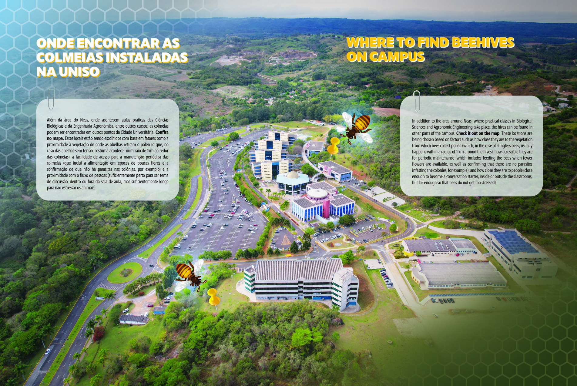 “Ter as abelhas conosco no câmpus cumpre várias funções”, conclui o professor doutor Rogério Augusto Profeta, Reitor da Uniso. “Elas são temas de aulas diversas, em vários cursos, especialmente naqueles relacionados ao meio ambiente, além de promover a educação ambiental em sentido mais amplo, uma vez que sua presença pode pautar o debate público no câmpus. Elas também nos ajudam na empreitada de reflorestar as matas ao nosso redor, aumentando a biodiversidade vegetal, além das aplicações na agricultura, que nós ajudamos, por meio da extensão, a levar aos produtores da região. Tê-las conosco é um pequeno passo, mas que, junto a outras iniciativas, pode ajudar a aumentar a produtividade agrícola sem o uso exacerbado de agrotóxicos. Nesse sentido, as abelhas estão nos fazendo mais favores do que nós somos capazes de retribuir. No fim das contas, elas habitam o câmpus tanto quanto nós, e é importante que sejamos capazes de compartilhá-lo com outras formas de vida, inspirando-nos nas relações mutualísticas que podemos observar na natureza.”