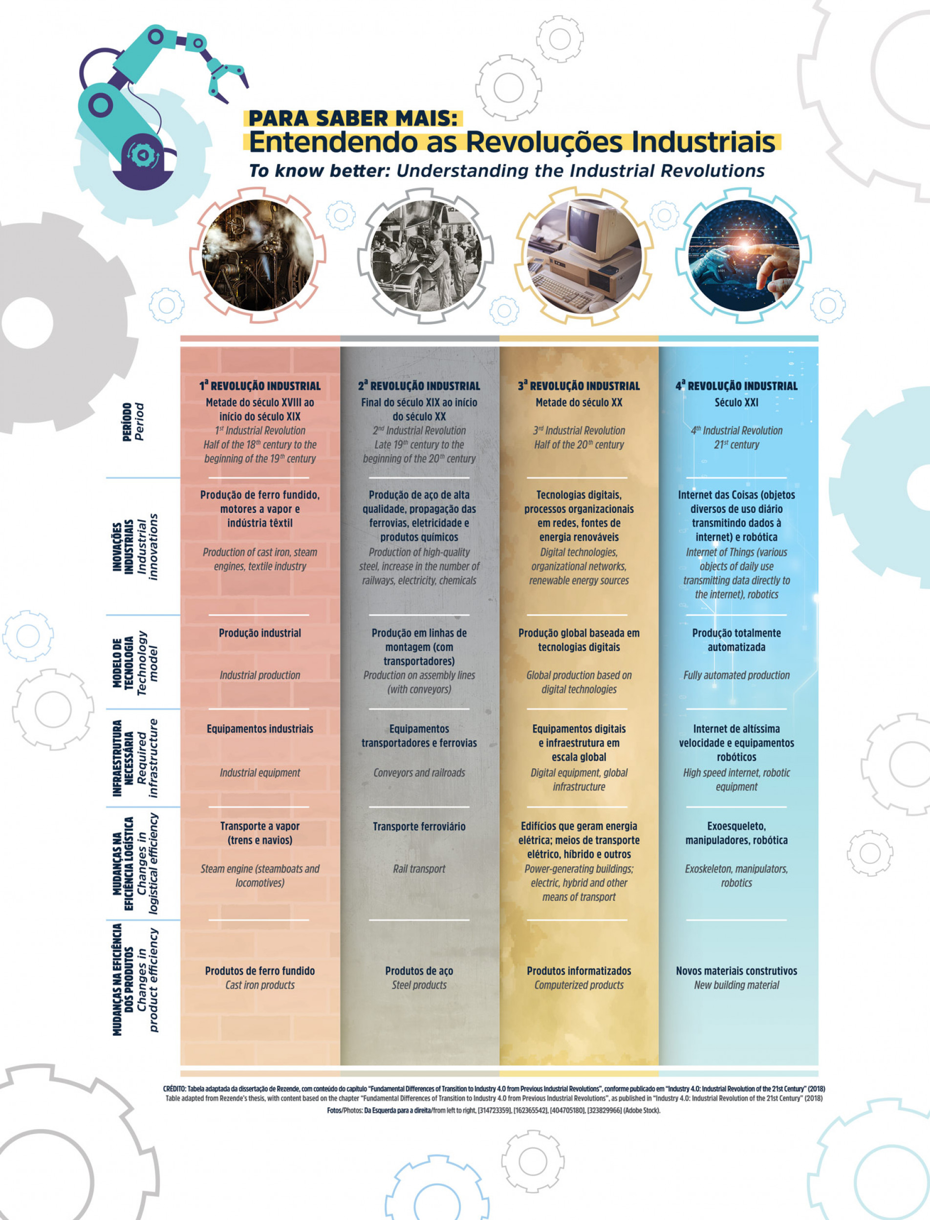 Mas as mudanças não pararam por aí. O professor mestre João Roberto Rezende, docente dos cursos de Administração de Empresas, Ciências Contábeis, Economia, Comércio Exterior e Engenharia de Produção da Universidade de Sorocaba (Uniso), diz que, neste momento — em que a internet se torna cada vez mais rápida e onipresente, os sensores cada vez menores e mais poderosos, e as máquinas cada vez mais inteligentes e mais integradas entre si (aprendendo e melhorando processos sem a necessidade de intervenção humana) —, o mundo passa por uma nova fase de transição. Essa fase é baseada na plena integração dos processos industriais, decorrente da utilização de estruturas digitais e resultando numa produção 100% automatizada. Isso configura a chamada Quarta Revolução Industrial. Ele estudou o assunto em sua pesquisa de mestrado, desenvolvida no Programa de Pós-Graduação em Processos Tecnológicos e Ambientais da Uniso.