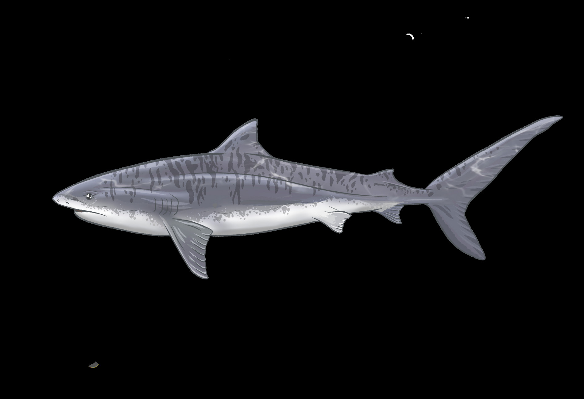 São tubarões particularmente grandes, podendo chegar a pesar até 1 tonelada e a medir até 6 m de comprimento (ainda que no Brasil a média seja de 3 a 4 m). Levam esse nome pelas manchas transversais de cor escura espalhadas pelo dorso. Podem ser encontrados em todos os oceanos, mas dão preferência para águas rasas, de até 350 m de profundidade, e apresentam comportamento diurno. No Brasil, estão presentes em toda a costa, mas os adultos são mais abundantes nas regiões Norte e Nordeste. Estatisticamente, essa é a espécie mais letal para os seres humanos, uma vez que 32,6% das interações agonísticas envolvendo essa espécie resultam na morte das pessoas envolvidas — o que normalmente acontece pelo fato de o tubarão confundir os seres humanos com suas presas habituais. Algumas partes de seu corpo, especialmente as barbatanas e o fígado, são bastante desejáveis no mercado, o que torna a espécie alvo de pescadores. O tubarão-tigre é considerado “quase ameaçado” (near threatened) segundo a União Internacional para a Conservação da Natureza (IUCN, na sigla em inglês), o que significa que, apesar de não estar ameaçado de extinção neste momento, pode vir a mudar de categoria num futuro próximo.