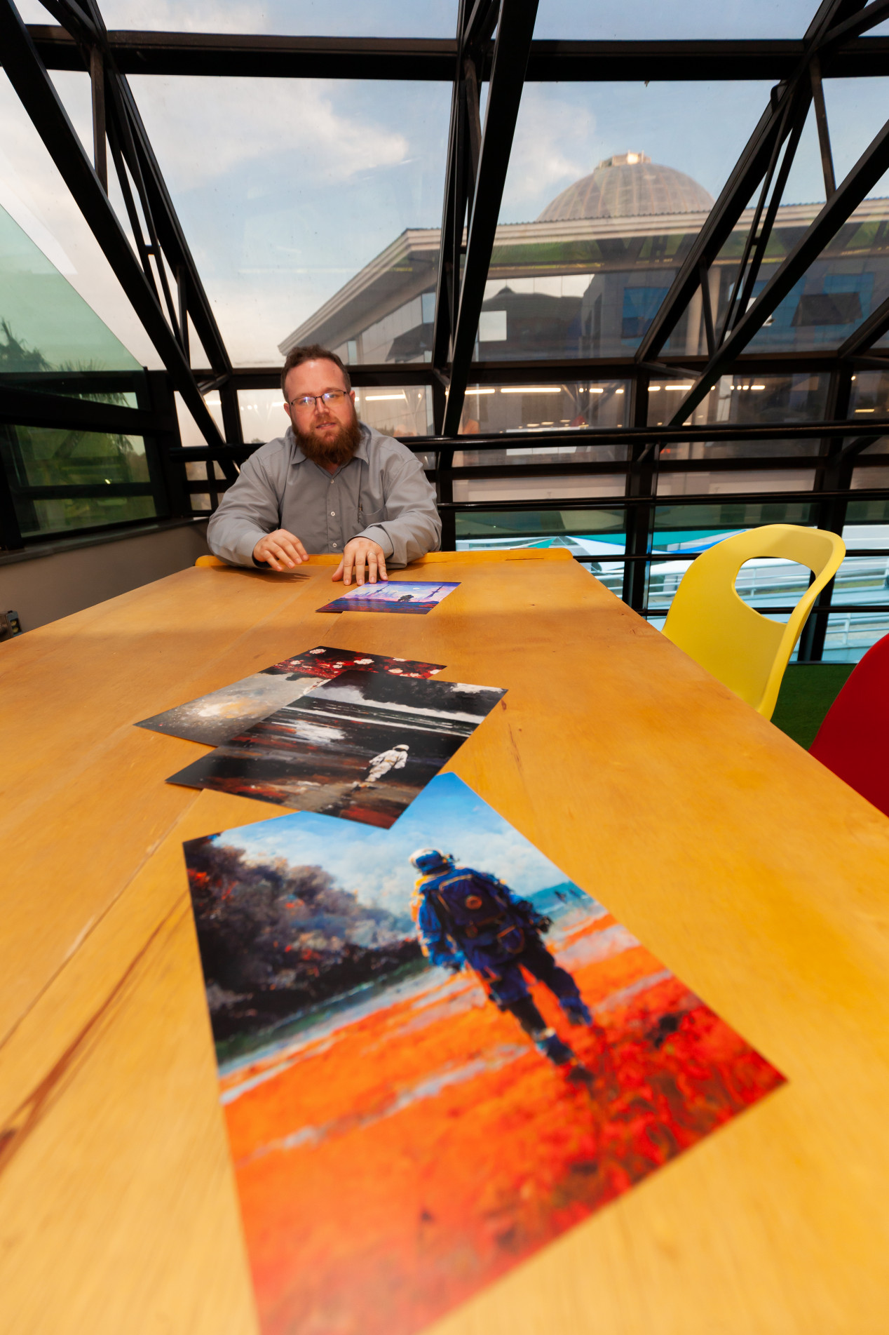 A série de ilustrações escolhida para esta reportagem retrata a jornada de um astronauta, desde uma praia onde aparentemente ocorreu um acidente — a queda da nave que o levou até ali, talvez? —, e ao longo do caminho por um mundo novo, até chegar às potencialidades de uma metrópole futurista no limite do desconhecido. As “pinceladas” que compõem as ilustrações foram concebidas de modo a emular os contornos imprecisos do impressionismo (movimento surgido na França no fim do século XIX, que rompia com a tradição realista de movimentos artísticos anteriores), porém, neste caso específico, elas não foram feitas por mãos humanas. Em vez disso — e até alguns meses atrás, essa poderia ser uma revelação surpreendente para muita gente, embora não mais o seja —, cada uma das ilustrações foi criada com o auxílio de uma ferramenta de Inteligência Artificial (I. A.).